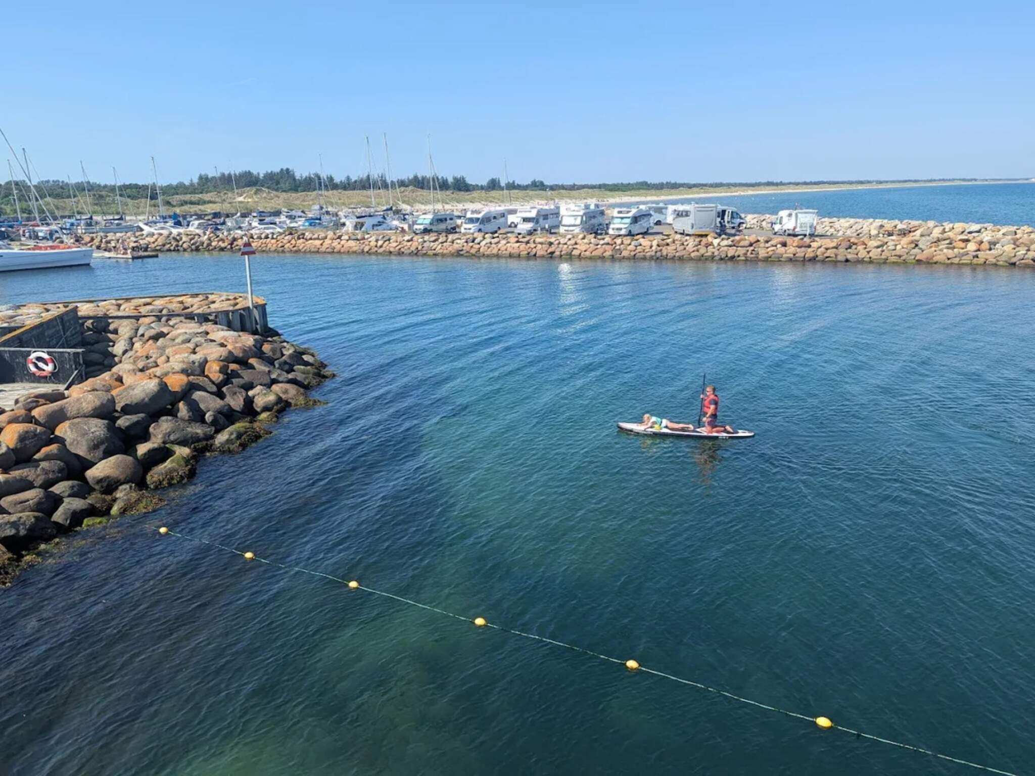 Udendørsrummet er gennemtænkt designet til privatlivets fred, med et hegn, der adskiller det fra den anden enhed. Her kan du slappe af på den sydvestvendte terrasse, som fanger solen det meste af dagen. Kun få meter væk ligger sandstranden, hvilket gør det muligt at nyde en forfriskende morgensvømning før morgenmaden. Efter en dag med sjov ved havet kan du vende tilbage til din terrasse, slappe af i havemøblerne og tilberede et lækkert måltid på grillen.