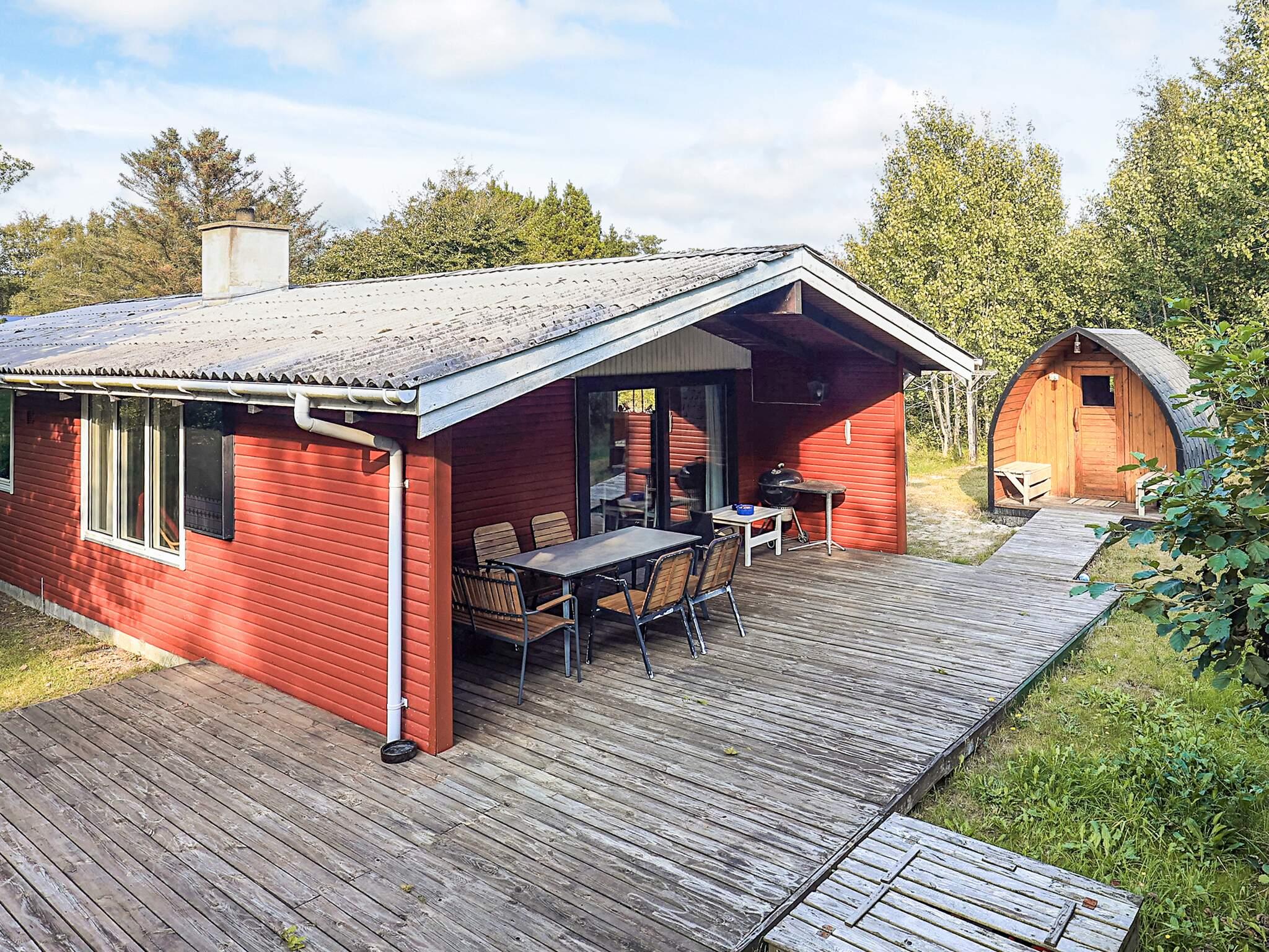 Sommerhus beliggende ca. 1 km nord for Ålbæk og ca. 300 m fra klitterne og den børnevenlige badestrand. Huset er enkelt men hyggeligt indrettet med to soveværelser, hvor det ene værelse er med en 3/4 seng, og et værelse med 2 enkelte senge. Stor stue med udgang til overdækket terrasse. Den store grund indbyder til fordybelse, hvor I kan gøre brug af udendørs sauna, nyde naturen og høre havets skvulpen. Der er et større skur til opbevaring af bl.a. cykler. Gæster skal selv sørge for brænde til brændeovnen.