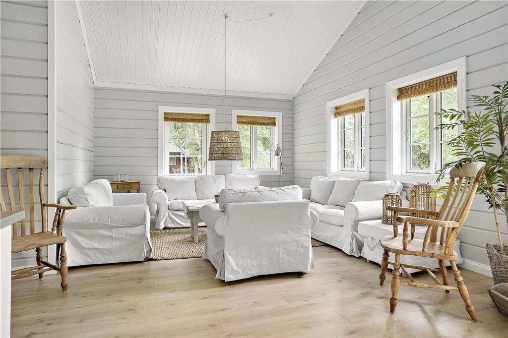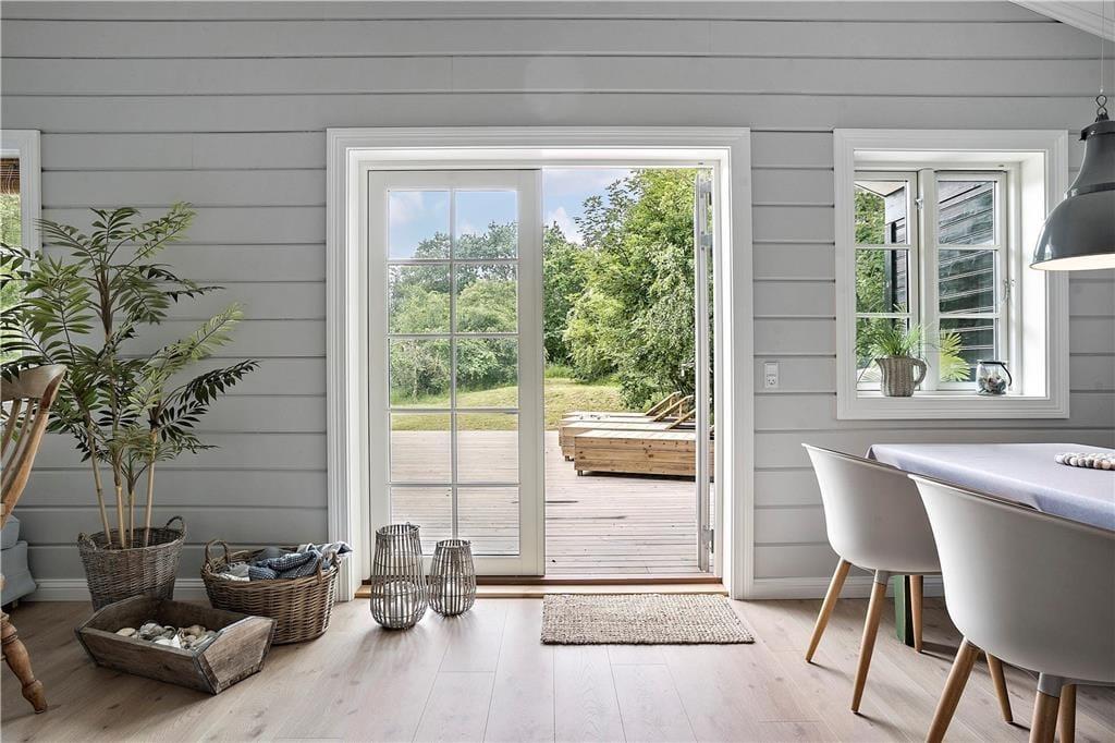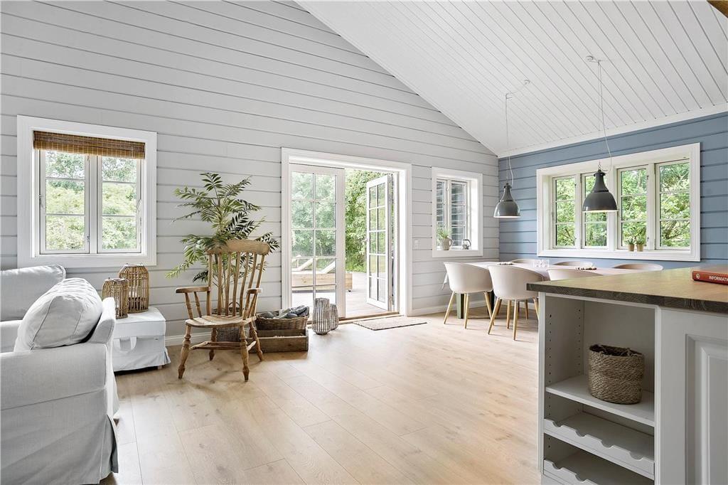Fra det øjeblik du træder ind i sommerhuset, mærker du den lyse og venlige atmosfære. Indretningen er hyggelig og indbydende, og der er masser af plads til, at hele familien kan slappe af sammen eller finde et roligt hjørne for sig selv. Opholdsstuen er husets hjerte, hvor store vinduespartier lukker lyset ind og skaber en dejlig forbindelse mellem ude og inde. Her kan I samles i sofaen til en god film, spille brætspil ved spisebordet eller bare nyde roen efter en dag fuld af oplevelser. Med to badeværelser er der rig mulighed for komfort, og de fire soveværelser gør det let at indlogere op til otte personer, så der er plads til hele familien eller en ferie med gode venner.