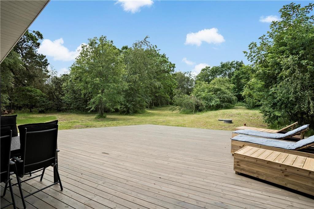 Den store terrasse inviterer til lange, afslappede dage under åben himmel. Start morgenen med en kop kaffe i solen, dæk op til frokost i det fri, og slut dagen af med en lækker grillmiddag. Med flere hyggelige siddepladser og masser af plads, kan alle finde deres favoritspot. Den omkringliggende græsplæne giver perfekte rammer for boldspil, leg og afslapning, og hvis du har din hund med, vil den med garanti nyde at udforske haven. Den rolige beliggenhed gør det nemt at slappe af og lade feriefreden indfinde sig, uanset om du vælger at tilbringe dagen på terrassen eller tage på eventyr i nærområdet.