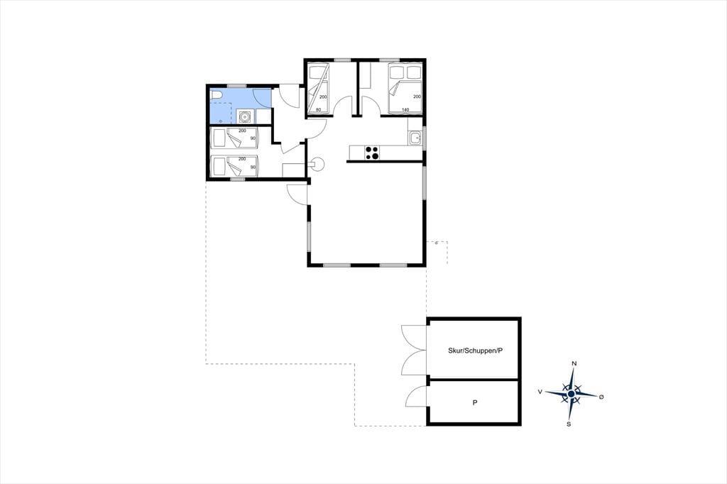 Med rustikke trævægge og loft til kip er sommerhuset rig på charme, og stuens brændeovn er også med til at højne den indbyggede hyggestemning. Både hjørnesofaen og spisepladsen er dejlige steder at slå sig ned, og hvis det er dig, der har madtjansen, kan du gå i gang med at trylle noget lækkert frem i det åbne køkken, mens du lytter til musik eller småsnakker med familien over halvmuren. På de tre soveværelser er der sengepladser til seks personer, og når du vågner efter en god nats søvn, kan du tage et brusebad på badeværelset, der har en enkel og pæn indretning.