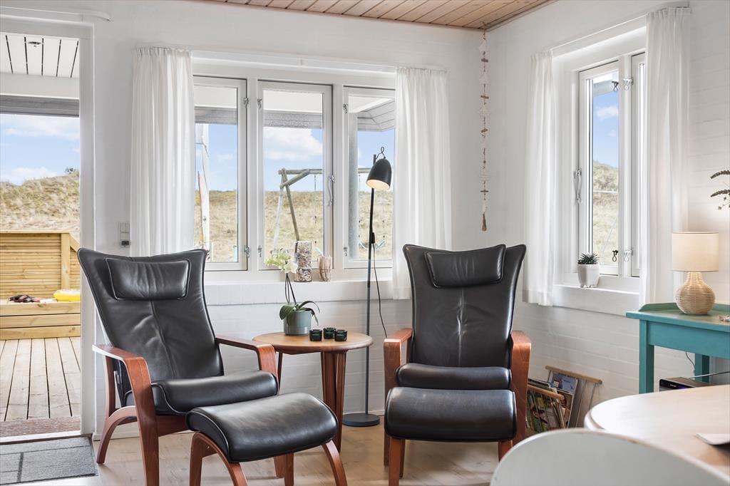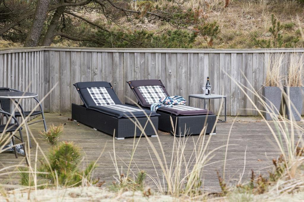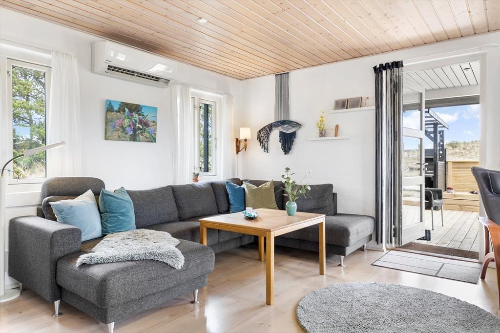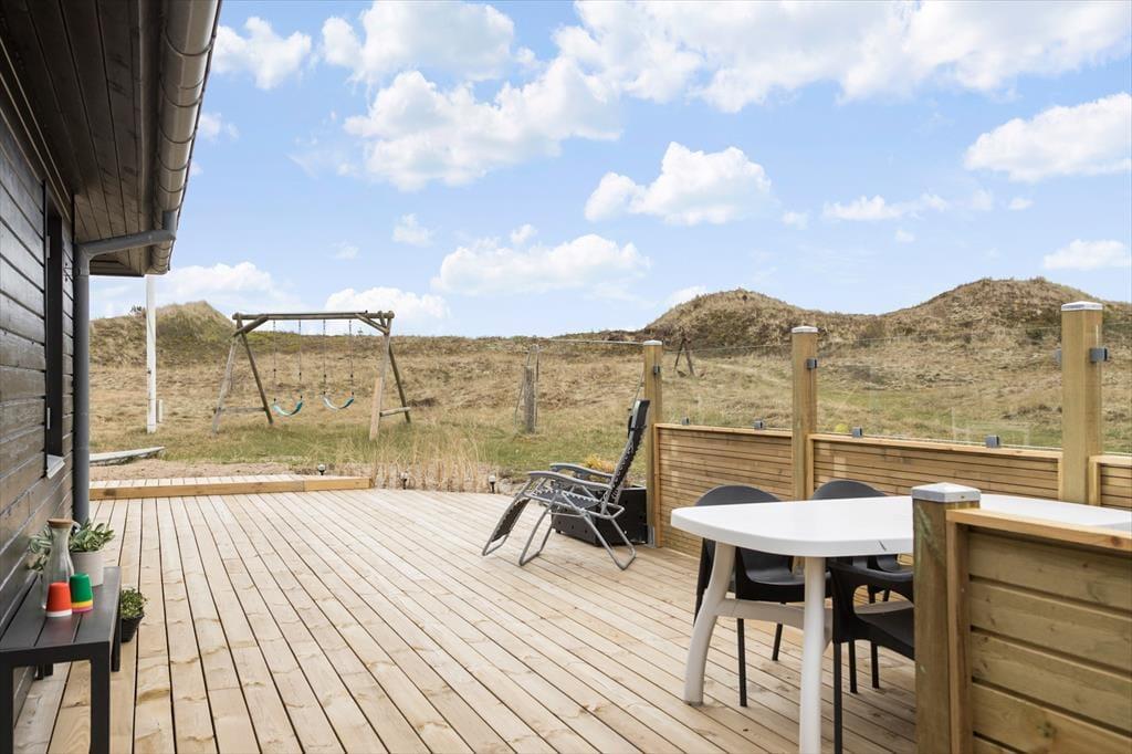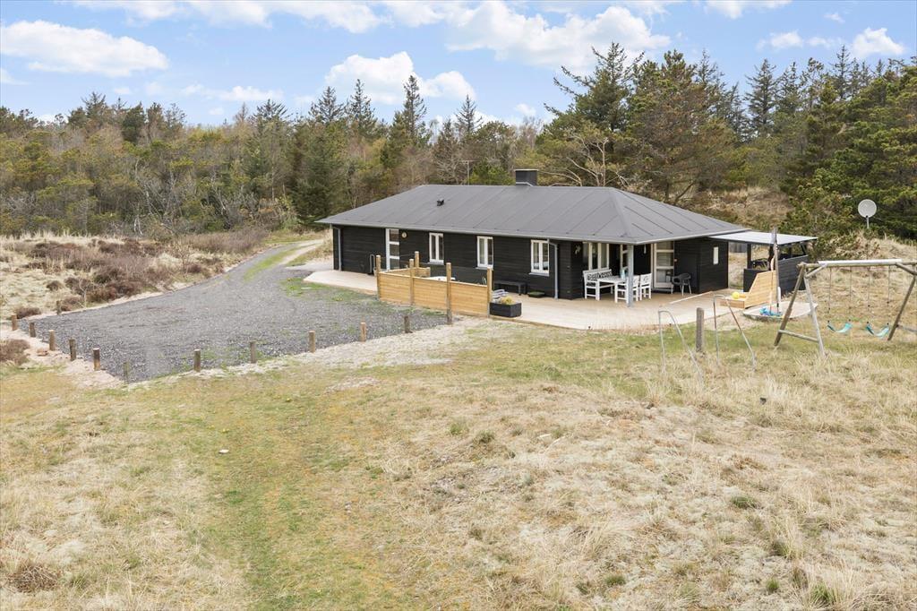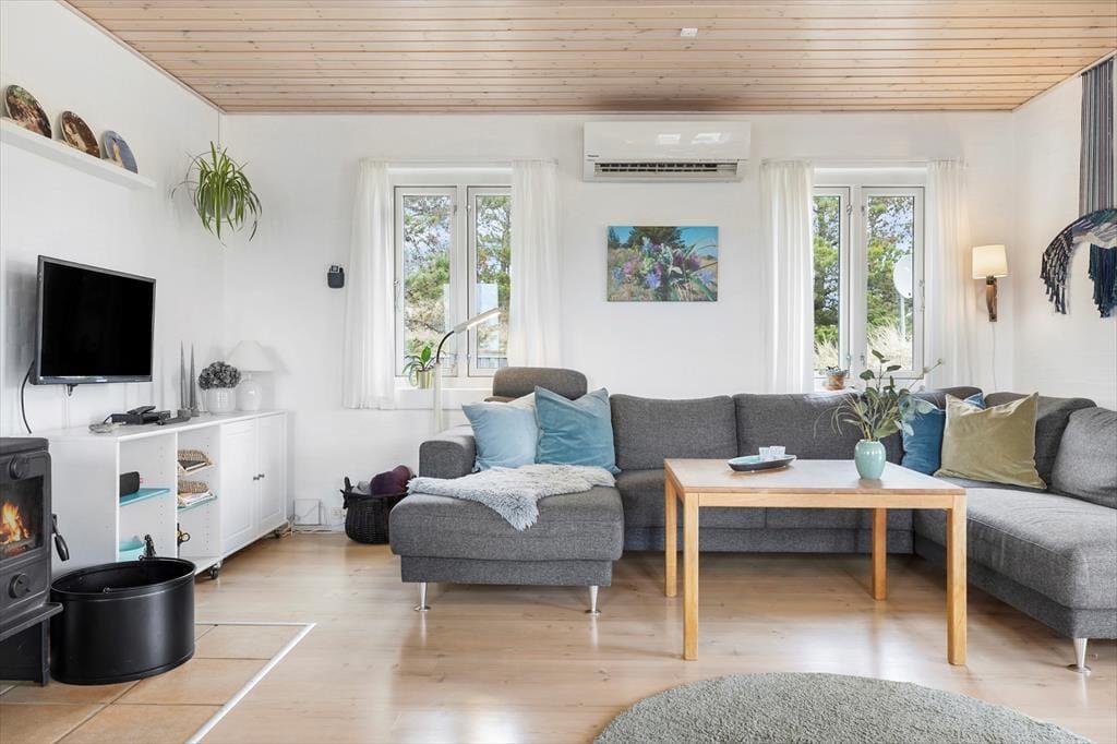 Når du sidder ude i det fri på den 2500 m2 store grund, har du udsigt til høje fyrretræer på den ene side og bløde klitter på den anden, så der er altid noget kønt at kigge på, uanset hvor du lader blikket vandre hen. Gyngestativet og den lille båd, der er ombygget til en sandkasse, vil sikkert begejstre børnene, og den korte afstand til stranden kan glæde både store og små. Bare prøv at forestille dig, hvor skønt det kan være at starte dagen med en opkvikkende dukkert, inden du vender hjem til terrassen for at drikke morgenkaffe i solen.
