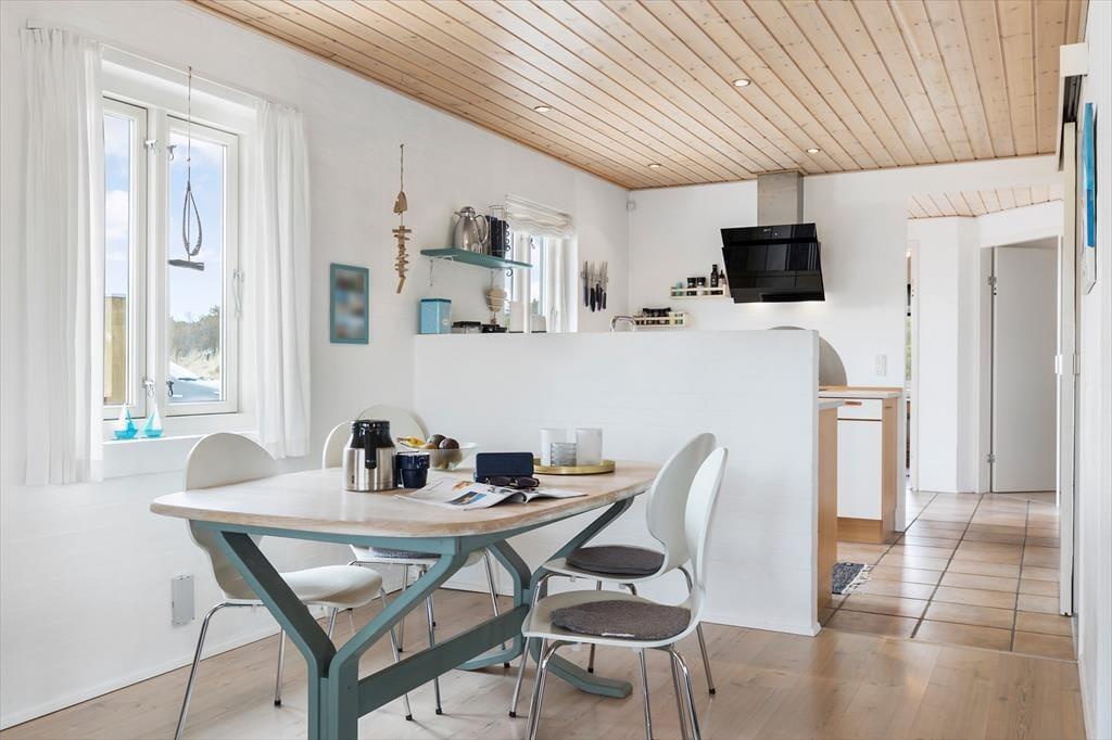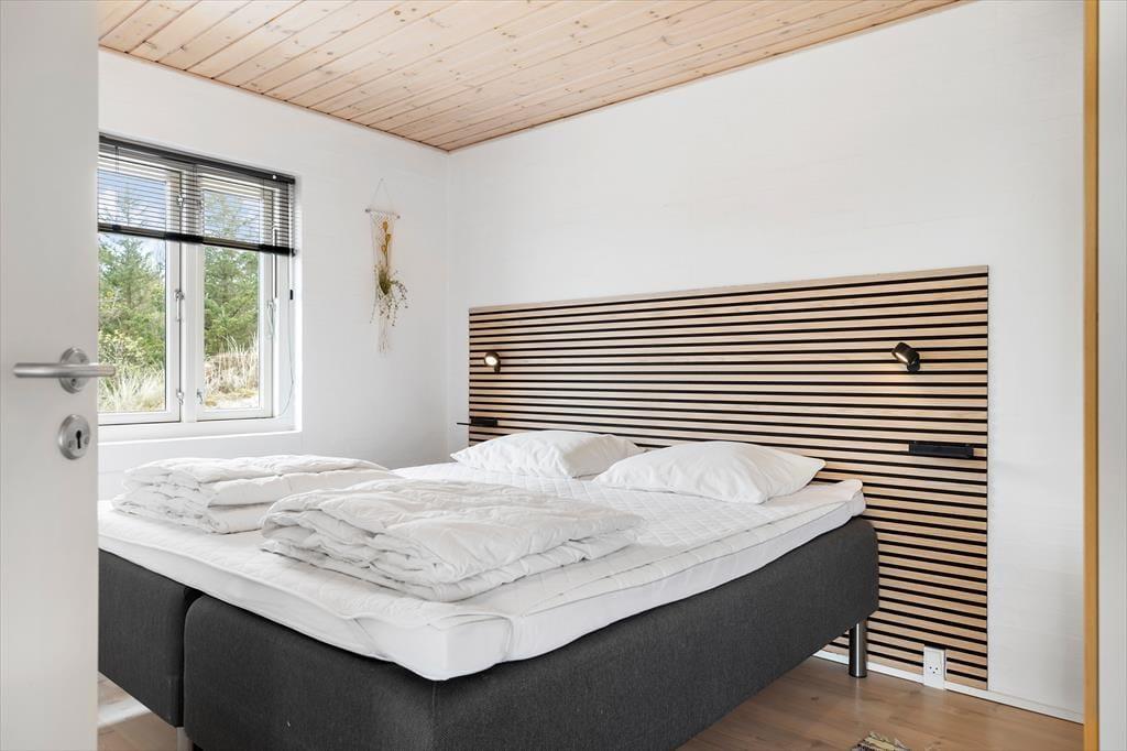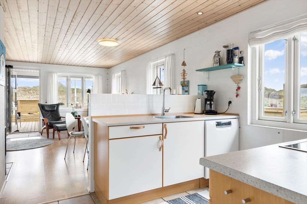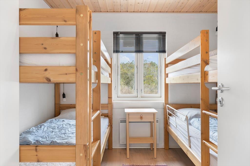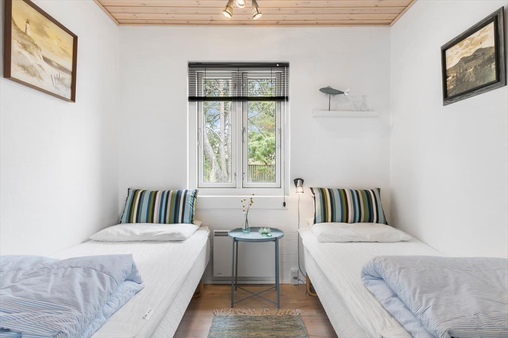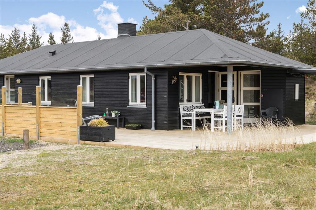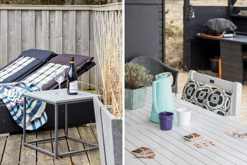 Når du sidder ude i det fri på den 2500 m2 store grund, har du udsigt til høje fyrretræer på den ene side og bløde klitter på den anden, så der er altid noget kønt at kigge på, uanset hvor du lader blikket vandre hen. Gyngestativet og den lille båd, der er ombygget til en sandkasse, vil sikkert begejstre børnene, og den korte afstand til stranden kan glæde både store og små. Bare prøv at forestille dig, hvor skønt det kan være at starte dagen med en opkvikkende dukkert, inden du vender hjem til terrassen for at drikke morgenkaffe i solen.