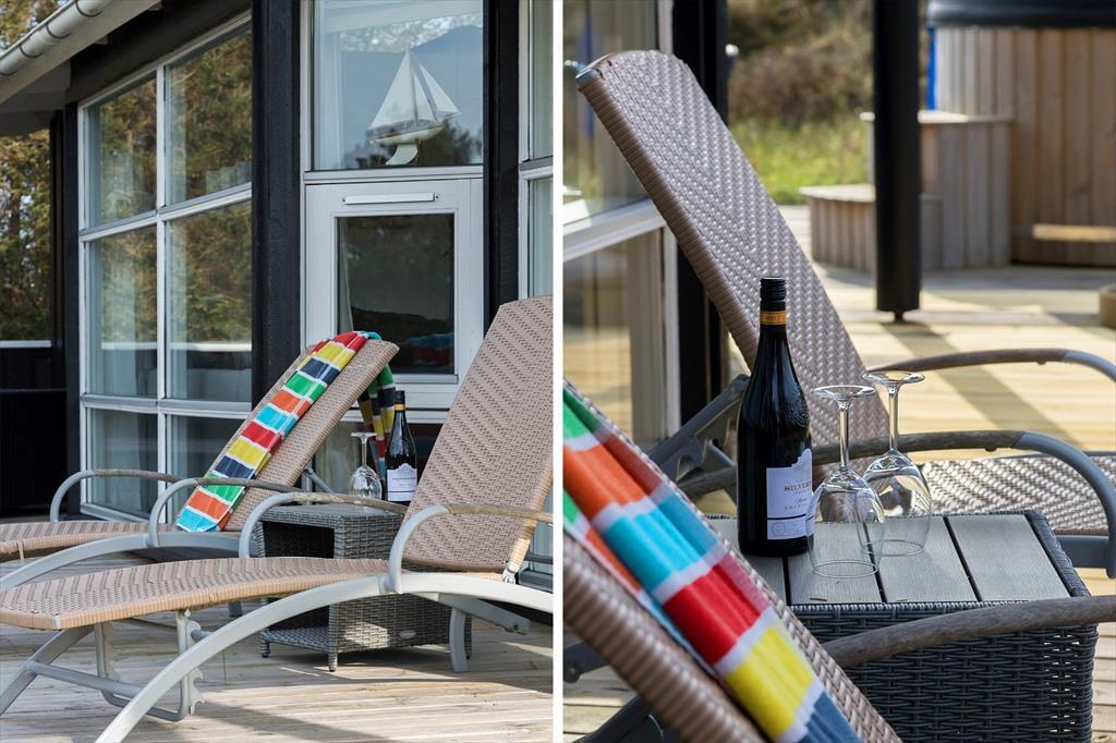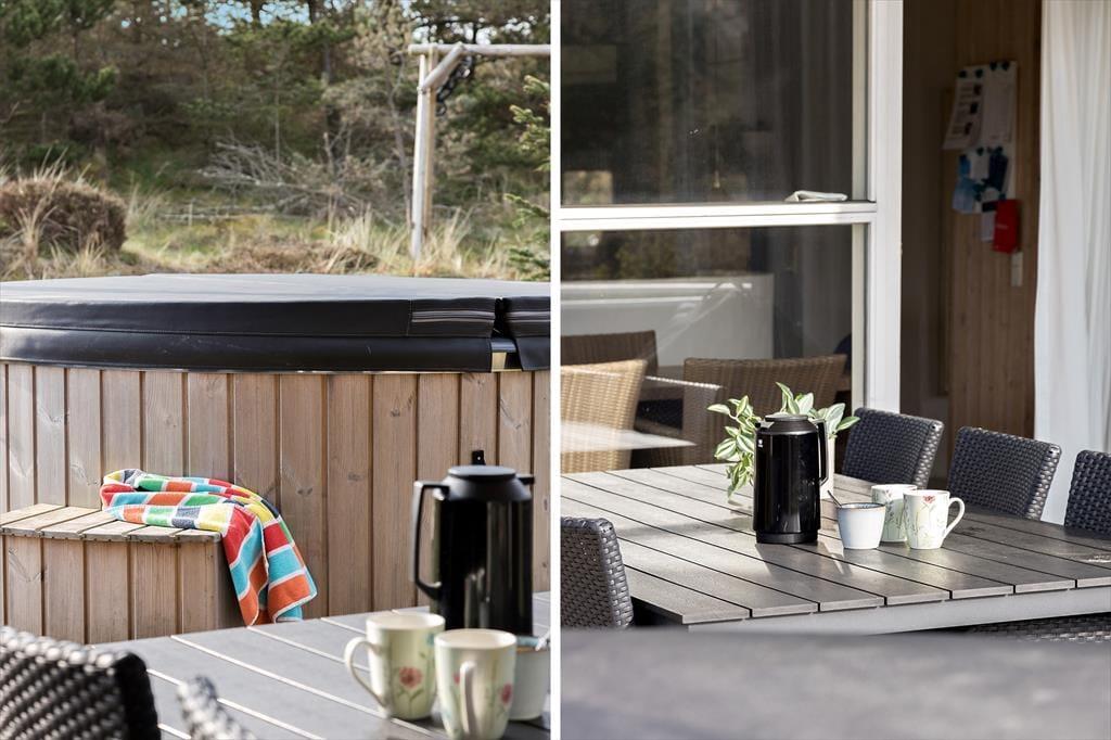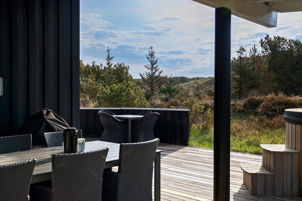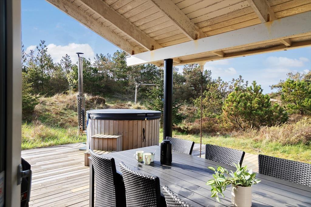 Naturgrunden er både stor og smuk, og mod øst er der ingen naboer, men fri passage over klitterne ned til stranden. Står du tidligt nok op, kan du se solopgangen fra vandkanten, løbe en tur eller tage en opkvikkende morgendukkert, inden du sætter dig godt til rette på terrassen med en varm kop kaffe og dagens avis eller en krydsogtværs – og hvis der ikke er andet på programmet, kan du sagtens blive i timevis i de ugenerede og rolige omgivelser. Om aftenen er det oplagt at grille fisk eller andre lækkerier under åben himmel, og mens mørket falder på, kan en times wellness i vildmarksbadet også fungere som den perfekte afslutning på en skøn feriedag.