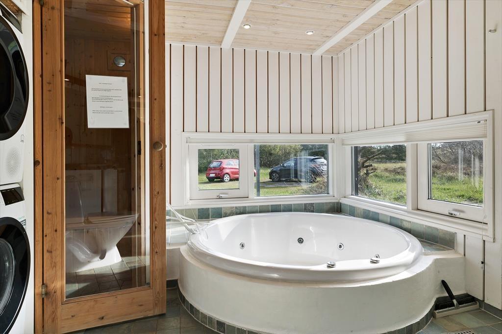 Hvis du gerne vil bo tæt på vandet på din ferie, bliver det ikke meget bedre end her på Ålbækvej 78. Dette fine sommerhus ligger nemlig i første parket til klitterne og kysten, og fra naturgrunden kan du følge en privat sti lige ned til den børnevenlige badestrand. Driverliv og vandplaskeri kan nu også oplagt foregå hjemme på ferieadressen, for huset har spa og sauna inden døre, og på terrassen står et lækkert vildmarksbad.