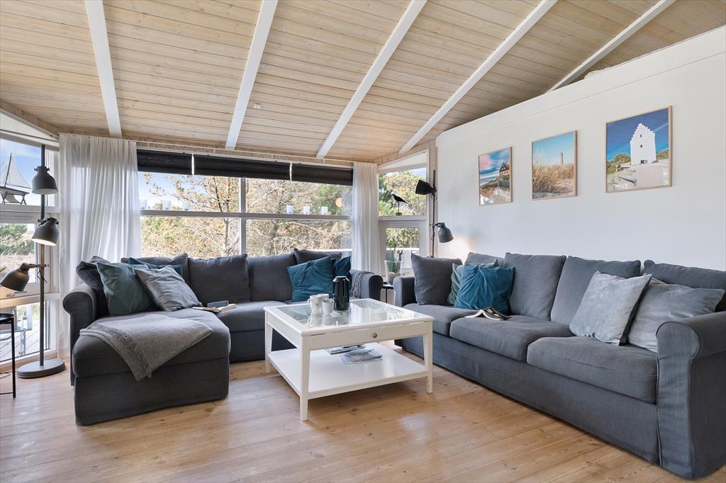 Den private sti, der fører fra huset og lige ned på stranden, kommer du sikkert til at bruge flittigt, for uanset vejret og årstiden føles det eksklusivt at bo så tæt på Kattegat og den smukke kyststrækning, der breder sig langs med Ålbæk Bugt. Bunken Klitplantage og Råbjerg Mile hører til blandt lokalområdets naturperler, og hvis du er golfspiller, har du bare et par kilometer til Danmarks nordligste golfbane hos Golfklubben Hvide Klit. Bunken Station er kun cirka en kilometer væk, så hvis du vil på en hyggelig togtur til Skagen for at gå på museum, spise ude og daske rundt i de maleriske gader, kan det nemt lade sig gøre.