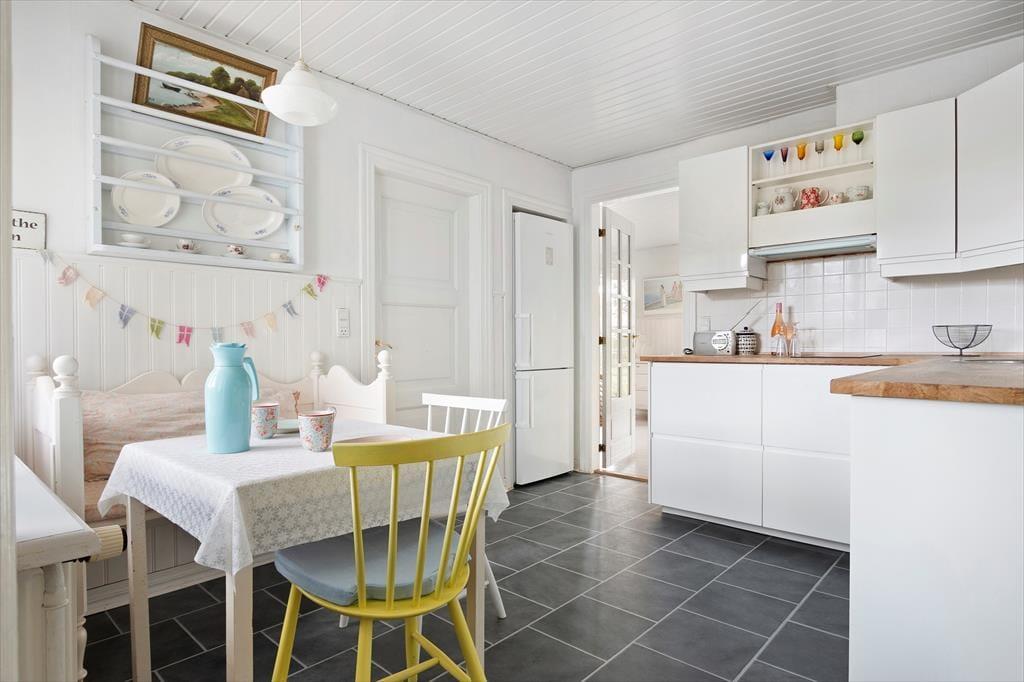 Ejendommen har pyntet her i bybilledet i omtrent et århundrede, og i forbindelse med moderniseringen af rummene har man fundet en lys og romantisk indretningsstil, der emmer af sommer, hygge og skønne dage. Fordelt på to plan er der 110 m2 at brede sig på, så du og dit selskab har god plads til rare fællesstunder, men også mulighed for privatliv. De tre soveværelser ligger på førstesalen, og i stueplan finder du en lille ekstra stue, der passer fint, hvis du trænger til at trække dig lidt tilbage med en god bog – hvis altså ikke du kobler af med et karbad på husets badeværelse. Spisekøkkenet er et hyggeligt sted at samles, og i den store opholdsstue er der spisebord og sofaer, der gør dagdrivertilværelsen ekstra komfortabel.