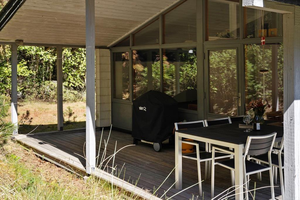 Sommerhuset har en fantastisk terrasse, der næsten går hele vejen rundt om huset. Her kan du finde en solrig plet på alle tider af dagen – perfekt til morgenkaffe, solbadning eller en hyggelig grillaften under åben himmel. Terrassen er både rummelig og afskærmet, så du kan nyde ferielivet uforstyrret. Naturgrunden omkring huset skaber en skøn ramme for afslapning og leg, og hvis du har din hund med, er der masser af plads til, at den kan snuse rundt og hygge sig.