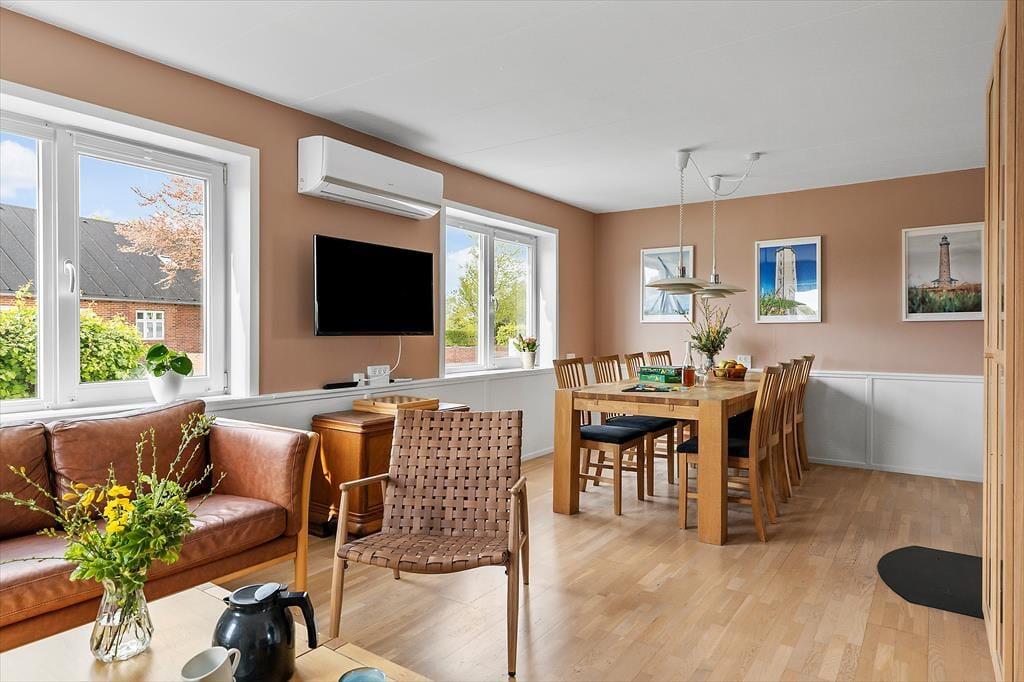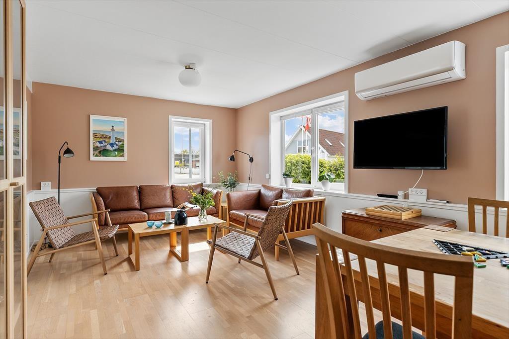 Sommerhuset byder på en rummelig og veludstyret boligoplevelse, hvor komforten er i top. De mange lydisolerede vinduer sikrer ro og fred, selv når feriedagenes aktiviteter er i fuld gang udenfor. Huset er også økonomisk i forbrug, hvilket gør det ideelt til længere ophold. Det hyggelige køkken indbyder til madlavning og samvær, men vær opmærksom på, at pilleovnen i køkkenet ikke må benyttes. Det store opholdsrum er indrettet med komfortable møbler, og husets åbne planløsning gør det nemt at nyde hinandens selskab, uanset om I spiller spil, ser film eller slapper af med en god bog.