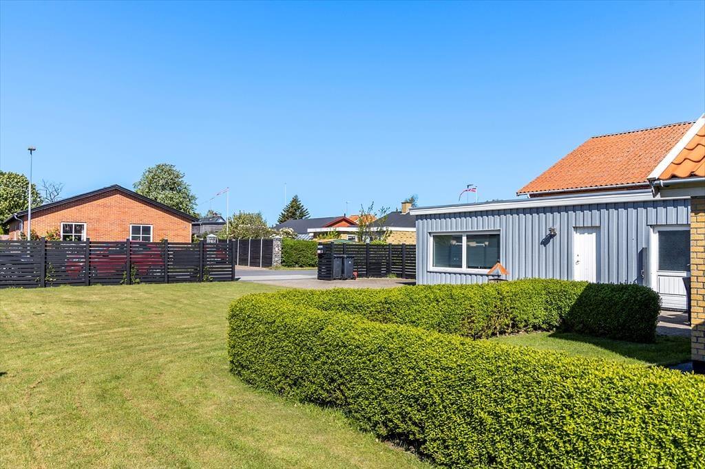 Den skønne terrasse skaber de perfekte rammer for afslapning og hyggelige feriedage under åben himmel. Her kan du drikke morgenkaffe i solen, nyde en god middag med dine kære eller blot slappe af og suge feriestemningen til dig. Sommerhusets udenomsarealer indbyder til hyggelige stunder i det fri, hvad enten du vil dase i solen eller gå en tur i de naturskønne omgivelser.
