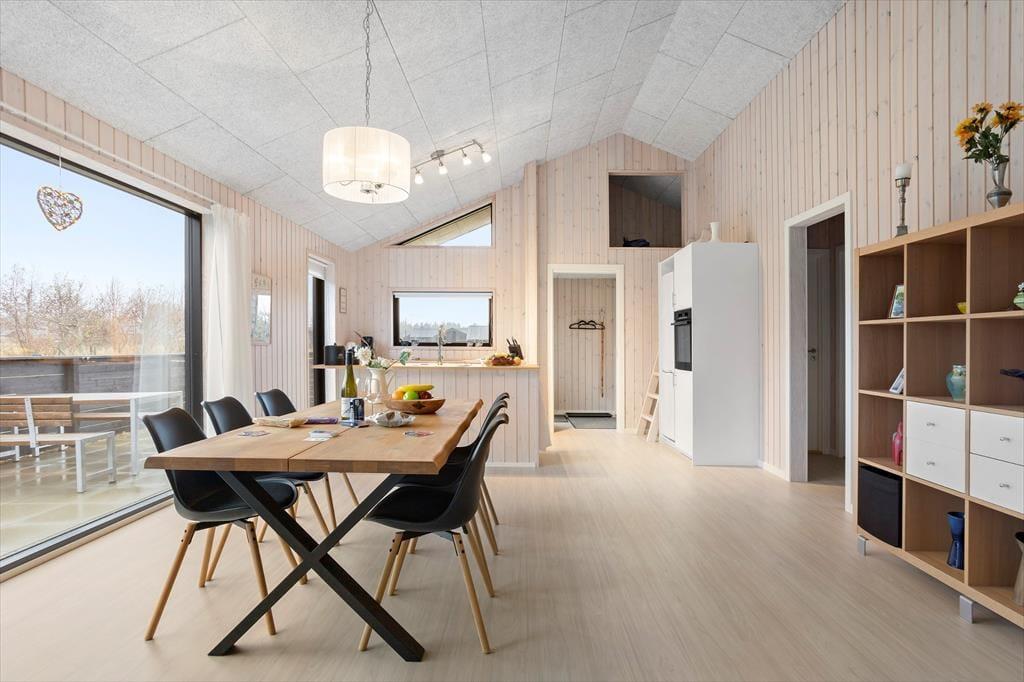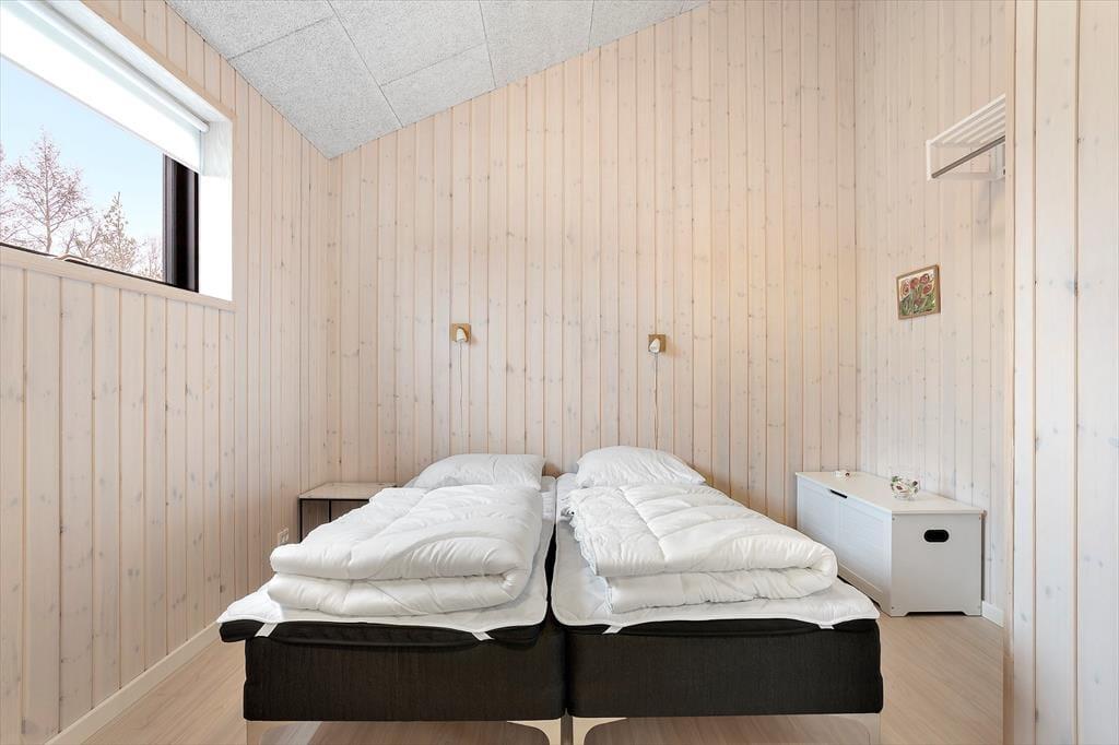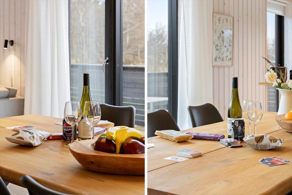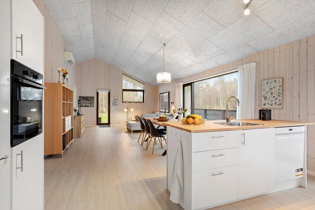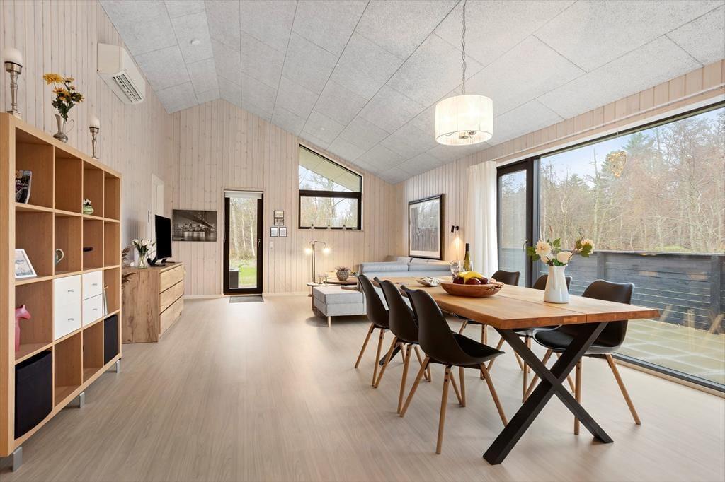 Her træder du ind i et sommerhus, der byder dig velkommen med store vinduespartier og et blødt, naturligt lys, der strømmer ind og giver rummene en rar og imødekommende stemning. De lyse omgivelser inviterer dig til at sænke tempoet, og det er nemt at mærke roen brede sig, så snart du tager de første skridt indenfor. Indretningen er enkel, personlig og hyggelig – helt perfekt til både par, venner og familier, der ønsker gode fællesstunder, men også plads til at trække sig tilbage. De to badeværelser er en stor fordel, når flere rejser sammen, og i opholdsrummet kan I mødes om madlavningen, lange samtaler eller en stille kop kaffe, mens udsigten til naturen udenfor giver en følelse af velvære og nærvær. Det er et sted, hvor feriestemningen indfinder sig helt af sig selv.