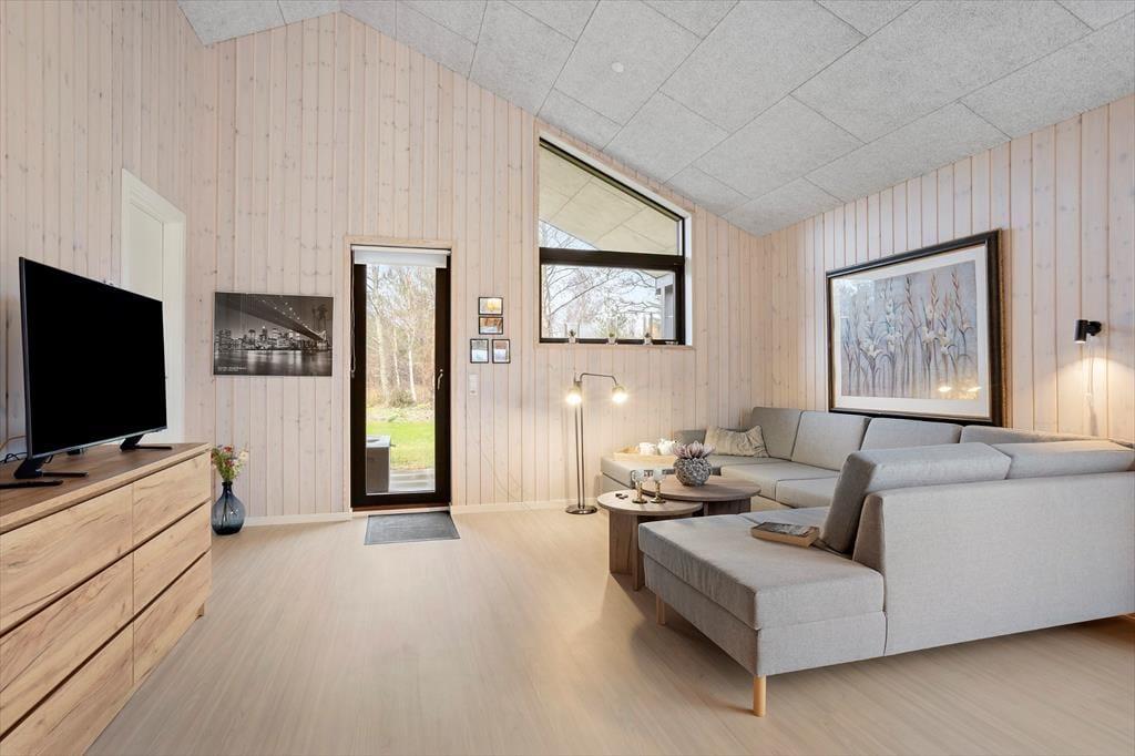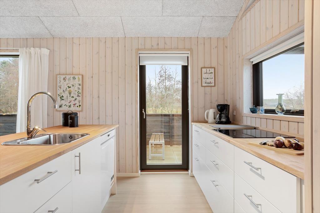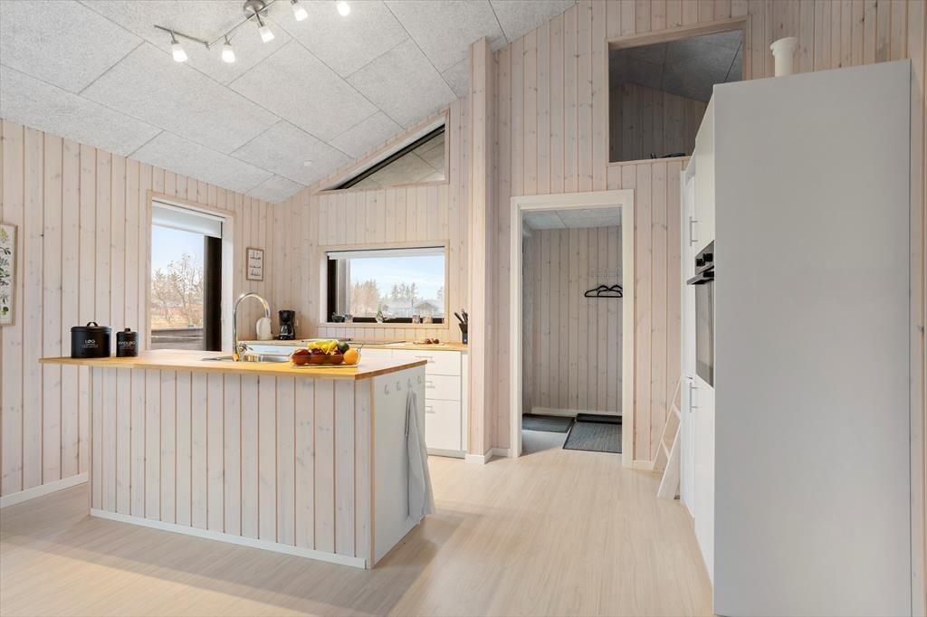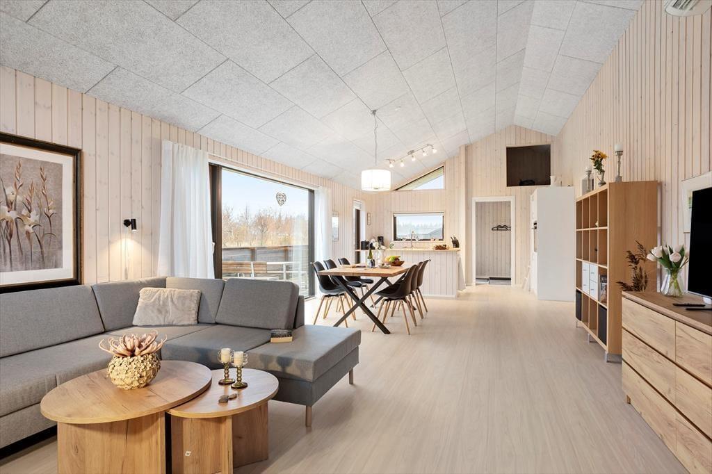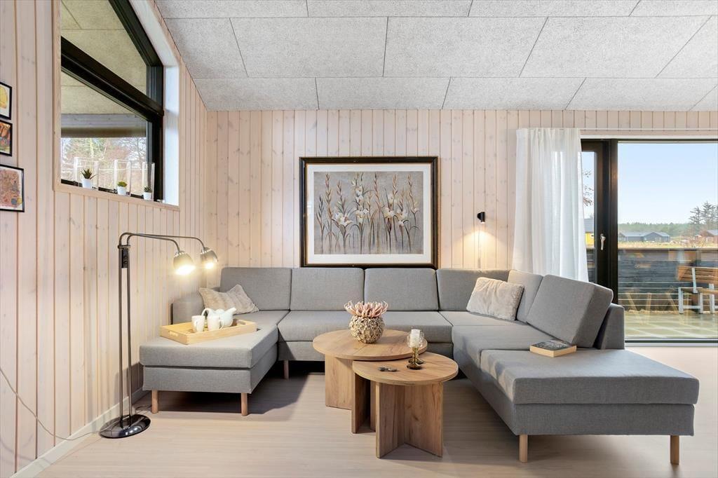Her træder du ind i et sommerhus, der byder dig velkommen med store vinduespartier og et blødt, naturligt lys, der strømmer ind og giver rummene en rar og imødekommende stemning. De lyse omgivelser inviterer dig til at sænke tempoet, og det er nemt at mærke roen brede sig, så snart du tager de første skridt indenfor. Indretningen er enkel, personlig og hyggelig – helt perfekt til både par, venner og familier, der ønsker gode fællesstunder, men også plads til at trække sig tilbage. De to badeværelser er en stor fordel, når flere rejser sammen, og i opholdsrummet kan I mødes om madlavningen, lange samtaler eller en stille kop kaffe, mens udsigten til naturen udenfor giver en følelse af velvære og nærvær. Det er et sted, hvor feriestemningen indfinder sig helt af sig selv.