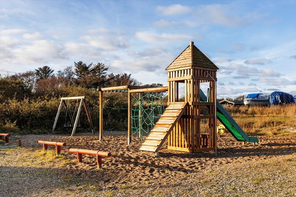 Sommerhusets dejlige terrasseområder gør det let at nyde livet i det fri fra morgen til aften. Her finder du både overdækkede kroge og åbne solpletter, så du altid kan vælge, om du vil sidde i læ, skygge eller sol. Forestil dig morgenmaden serveret under det overdækkede tag, mens duggen langsomt forsvinder fra græsset – eller en stille eftermiddag med en bog, mens fuglene synger i baggrunden og sommerens dufte driver rundt i luften. Om aftenen kan I tænde op i grillen, finde tæpperne frem og lade samtalerne fortsætte, mens lyset langsomt svinder. Den fredelige beliggenhed gør det hele endnu mere stemningsfuldt, og udearealerne indbyder både til leg, afslapning og hyggelige feriestunder i det grønne.