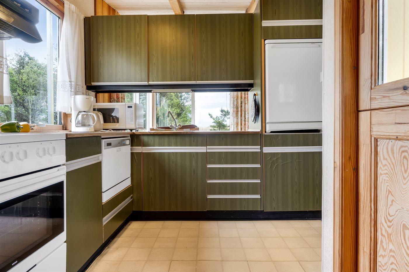 Køkkenet er udstyret med 1 køleskab. Der er 4 induktionskogeplader, varmluftovn, mikrobølgeovn samt opvaskemaskine.