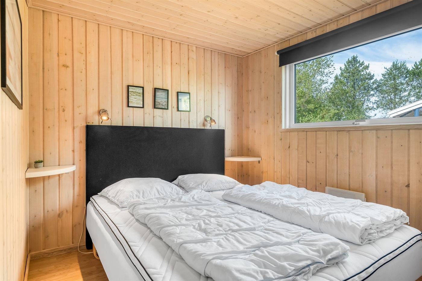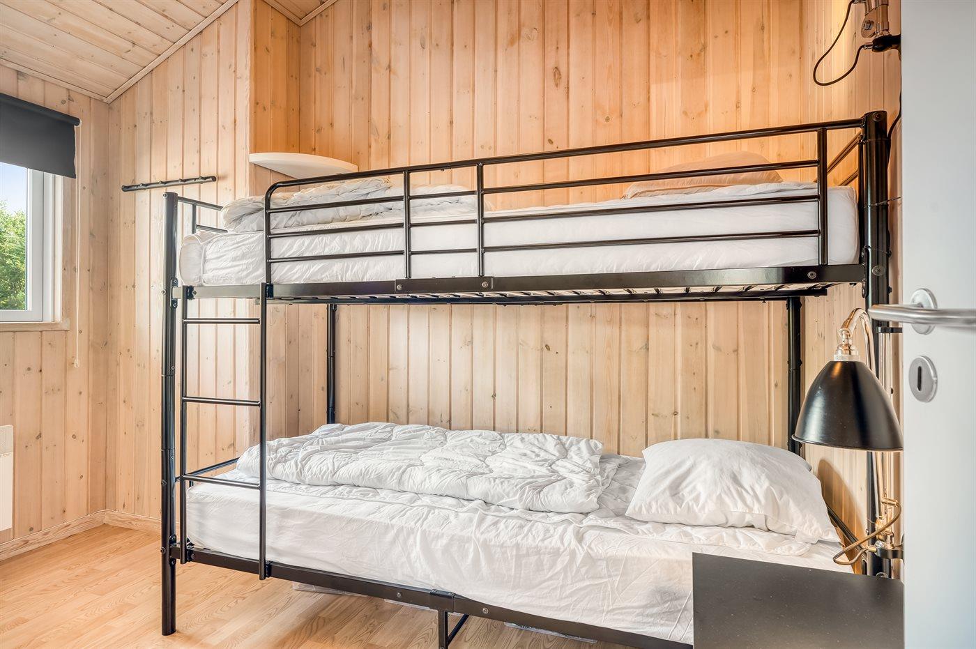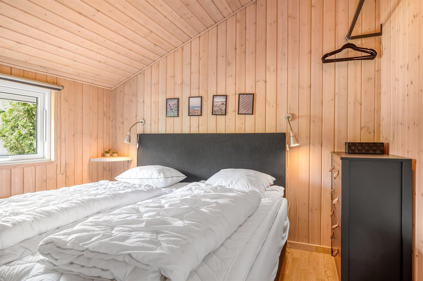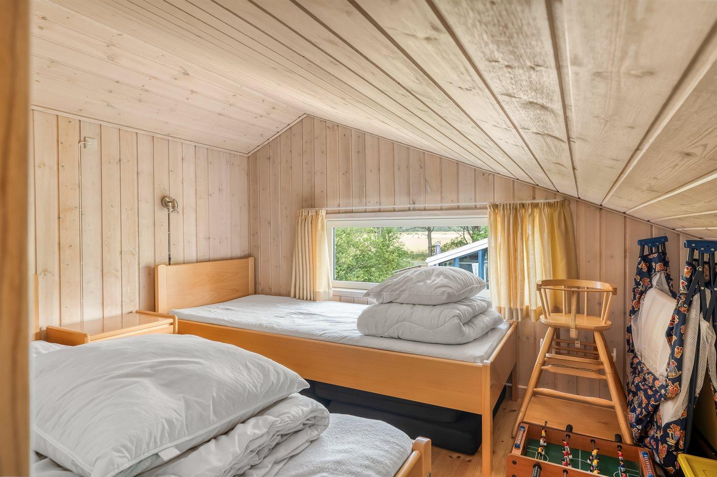 Der er i alt 3 soveværelser. Sovepladserne fordeler sig på: 4 sovepladser i dobbeltsenge. 2 sovepladser i enkeltsenge. 2 sovepladser i køjeseng. 2 af disse sovepladser befinder sig på husets hems.