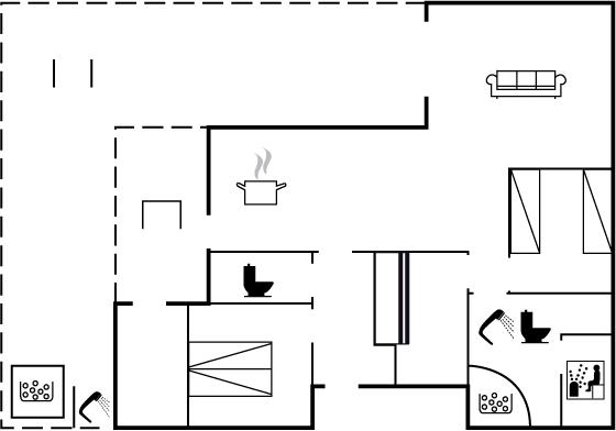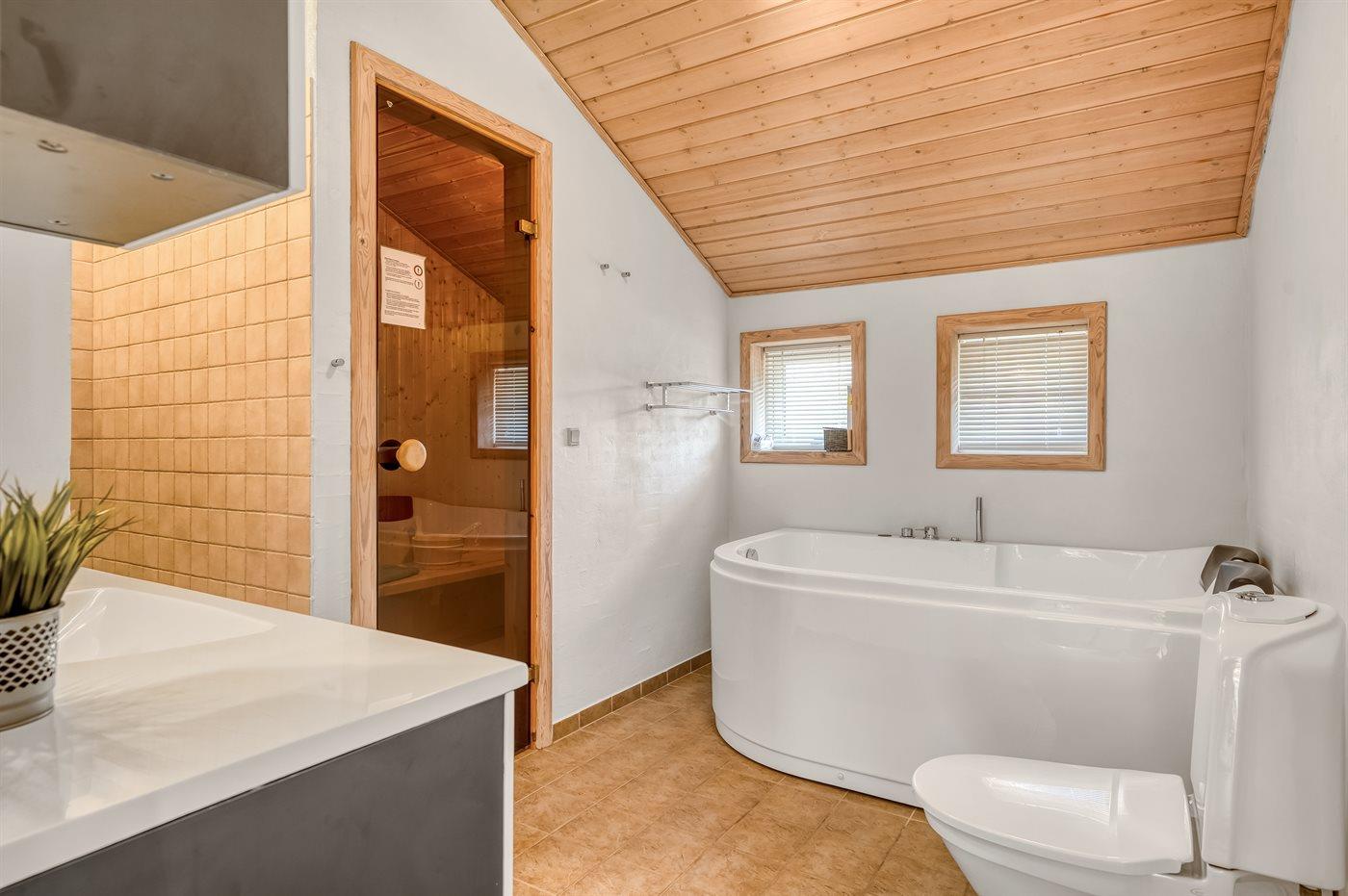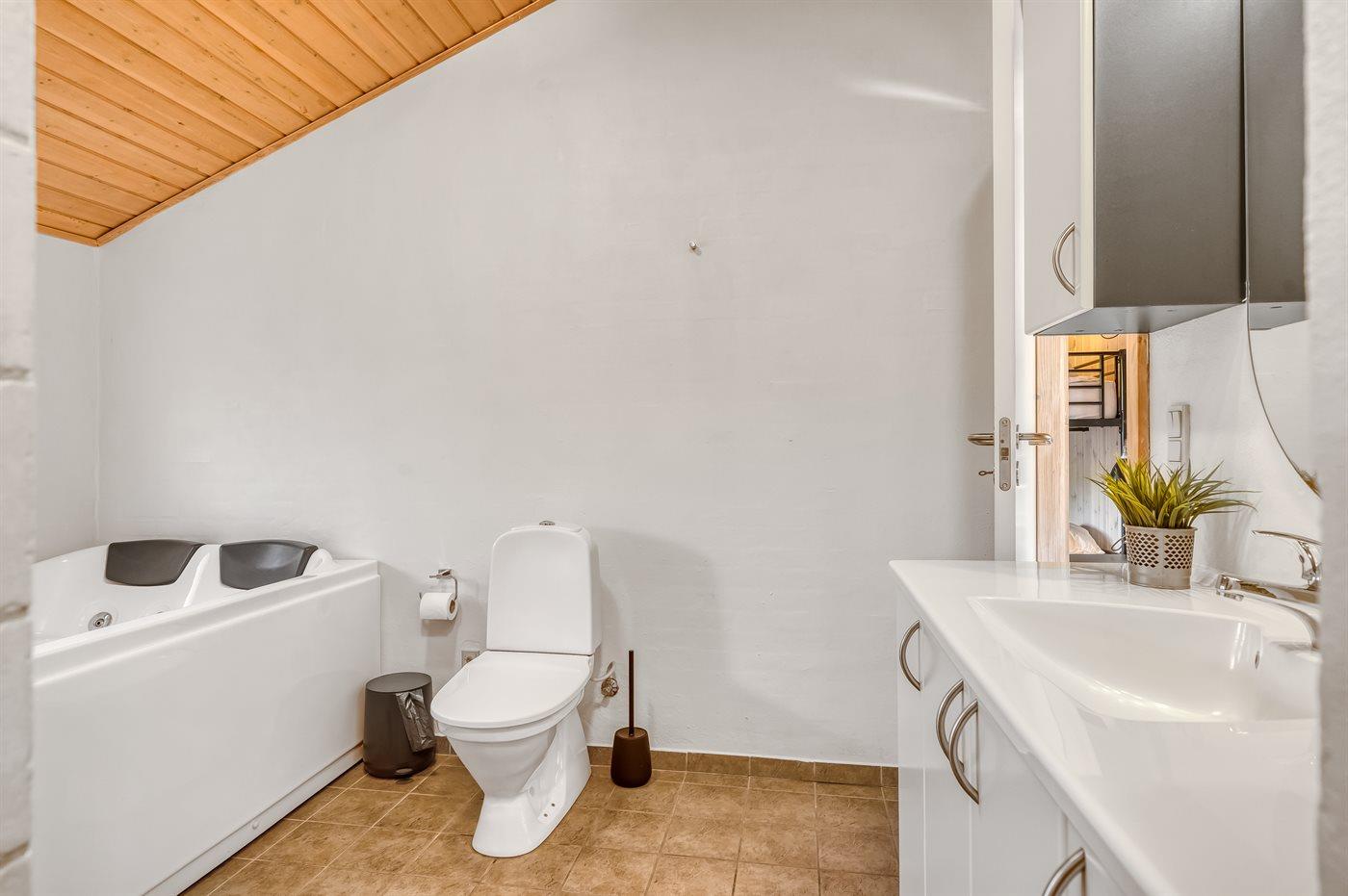 Der er 1 badeværelse med bruseniche og 2 toiletter, heraf 1 gæstetoilet. Der er gulvvarme på 1 badeværelse. Der er gulvvarme på gæstetoilettet.