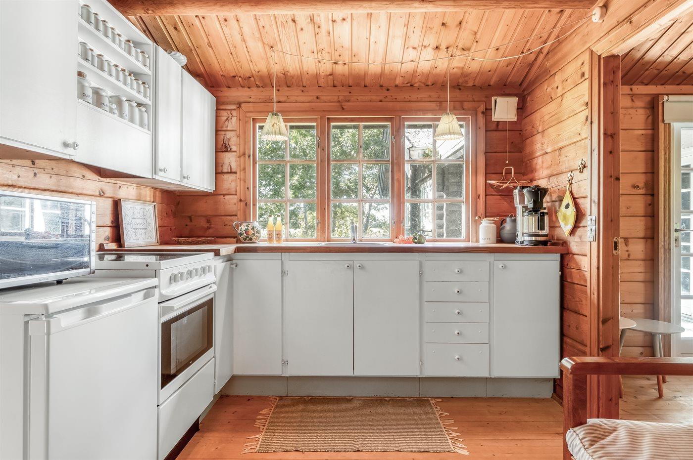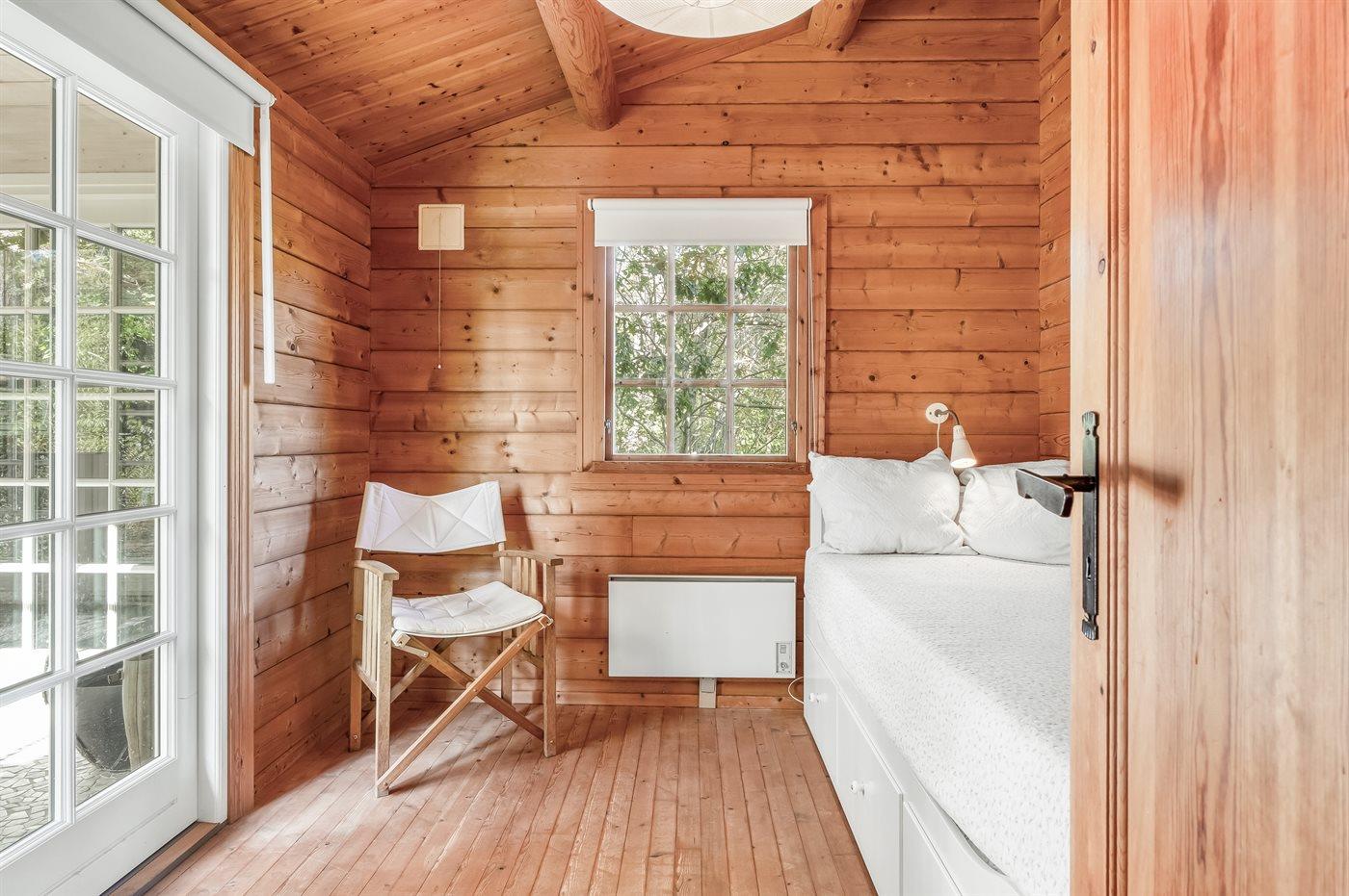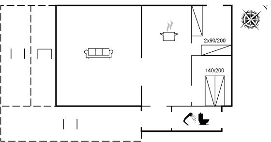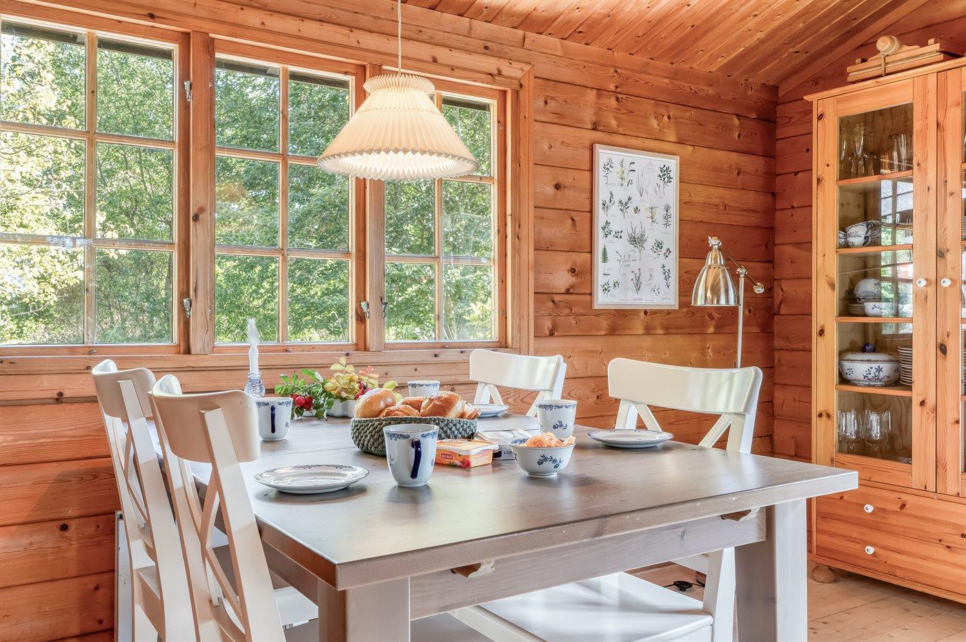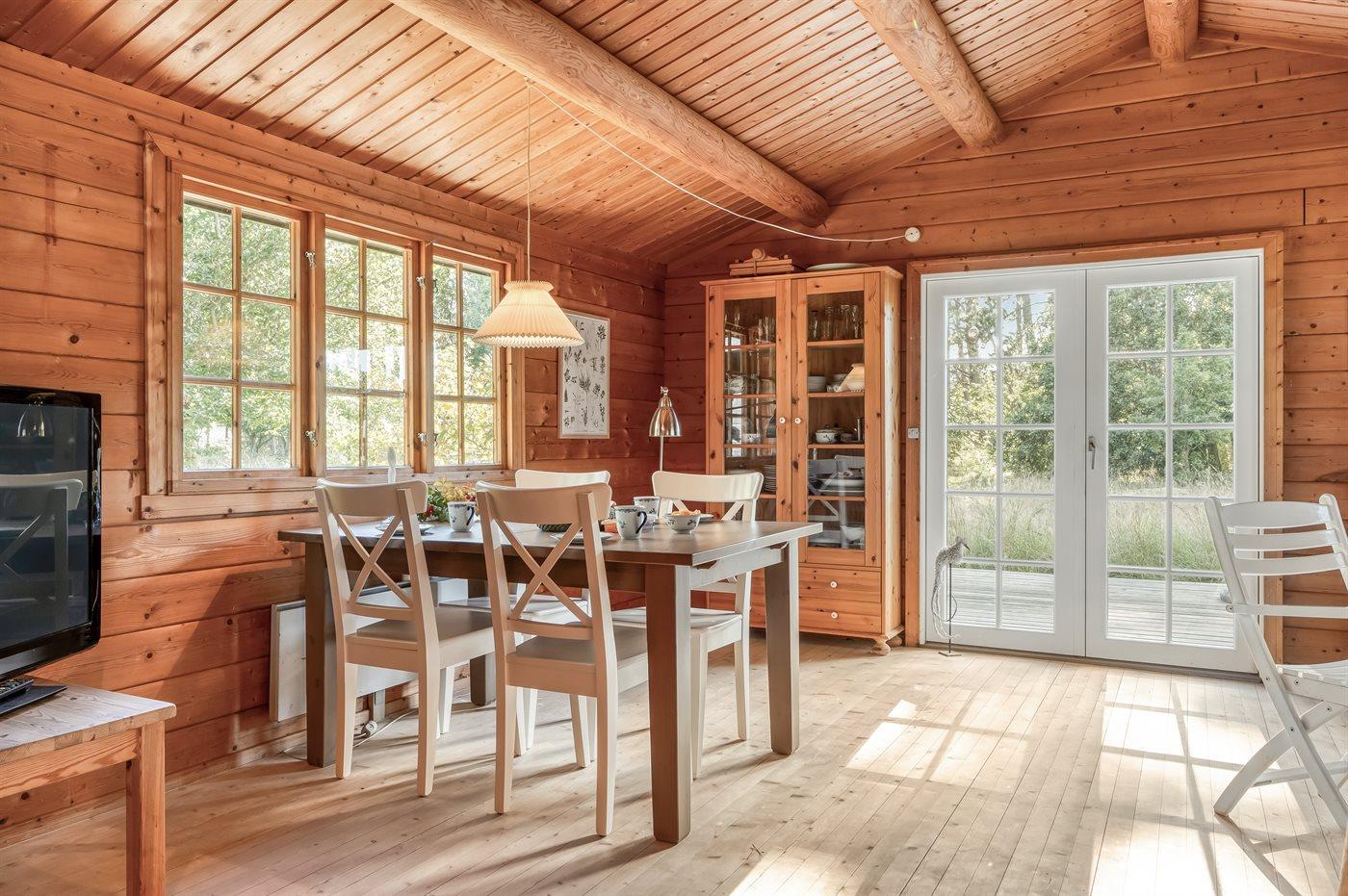 Huset er indrettet med loft til kip, 2 rummelige værelser, et åbent køkken samt stue med bl.a. brændeovn. Fra stuen er der udgang til terrassen, hvor I kan nyde de stille aftener med god mad fra grillen.