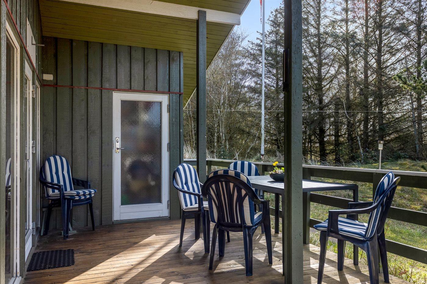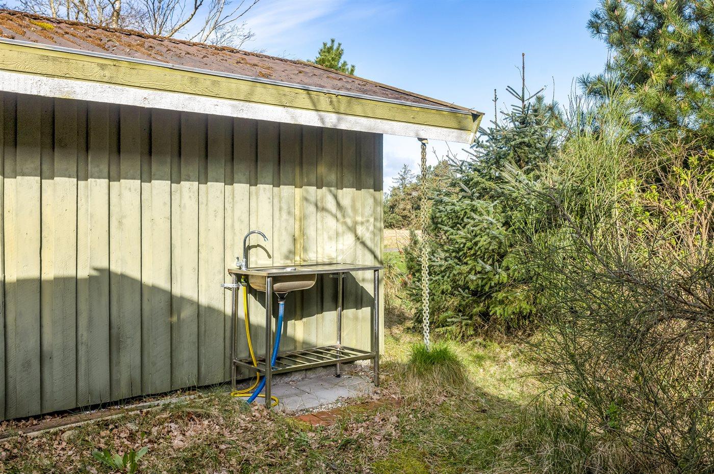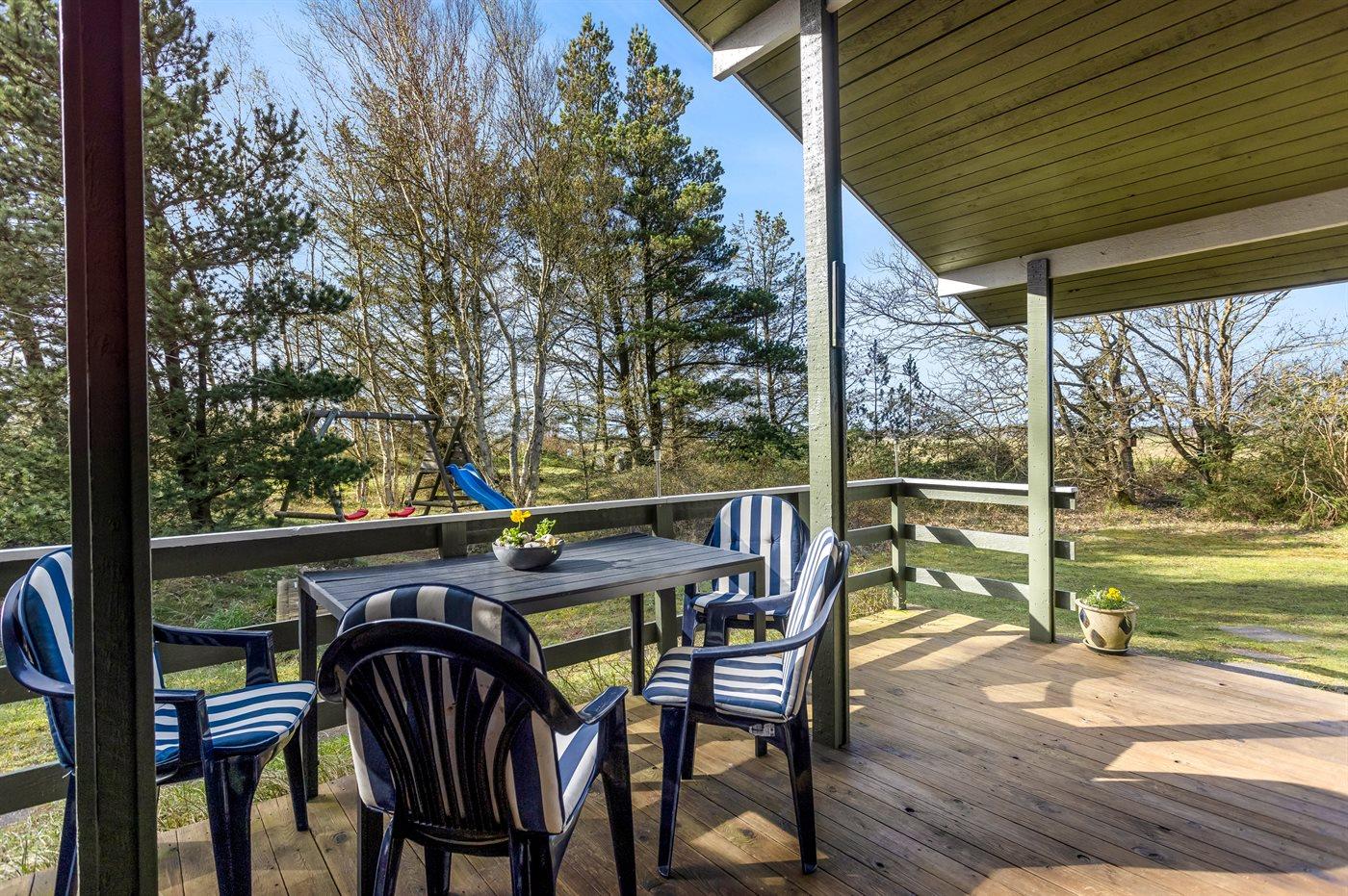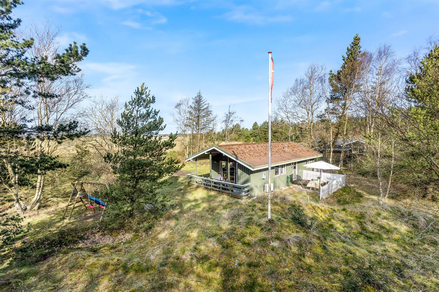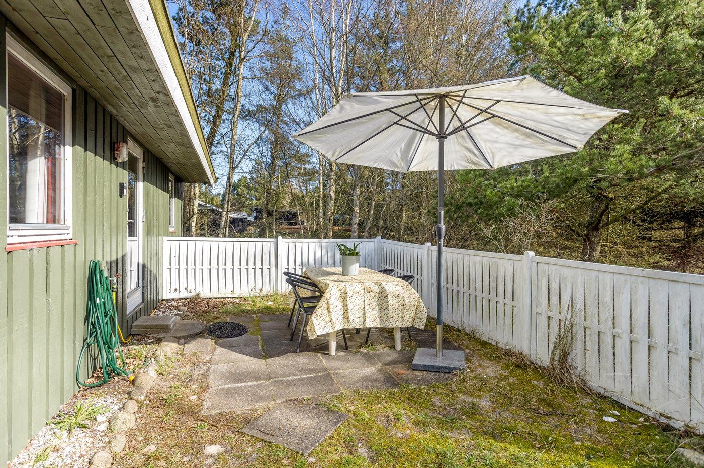 Ferieboligen er beliggende på en 7500 m² stor naturgrund. Der er 150 m til havet. Nærmeste forretning er beliggende i en afstand af 5000 m. Til ferieboligen hører åbent terrasseareal. Desuden er der overdækket terrasse. Gynge. Sandkasse. Rutchebane. Grill til rådighed. Der er installeret stik til opladning af elbil. Parkering ved ferieboligen.