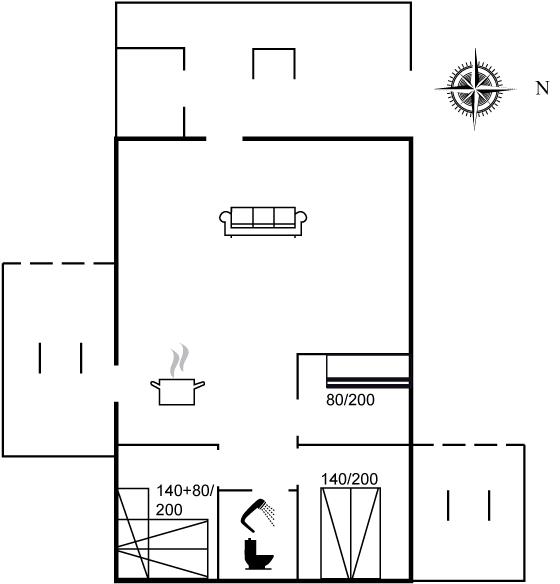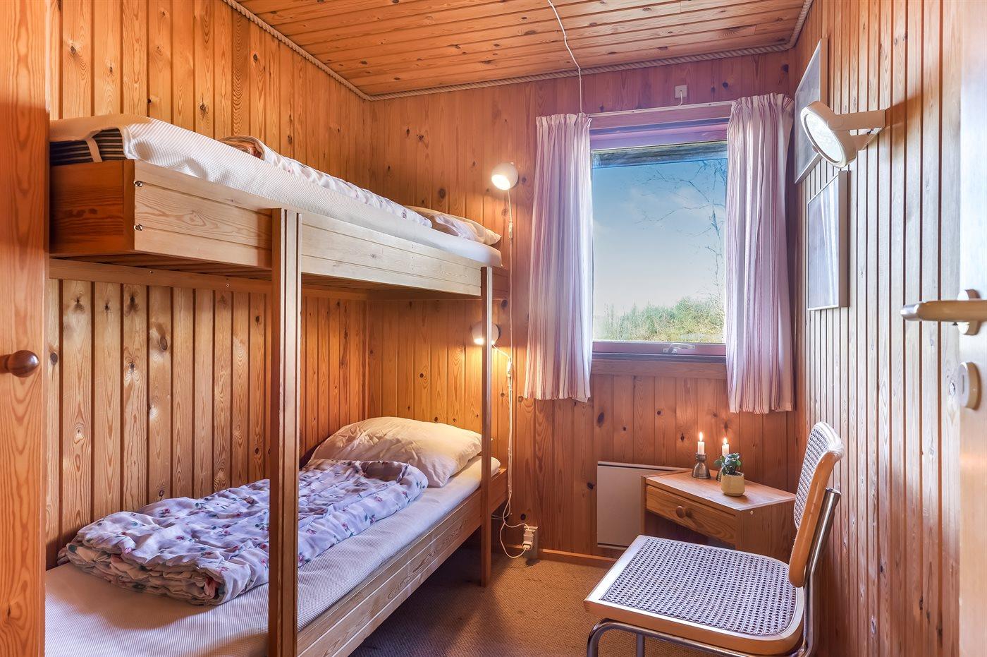Der er i alt 3 soveværelser. Sovepladserne fordeler sig på: 4 sovepladser i dobbeltsenge. 3 sovepladser i køjesenge. Derudover er der 1 stk. barneseng.