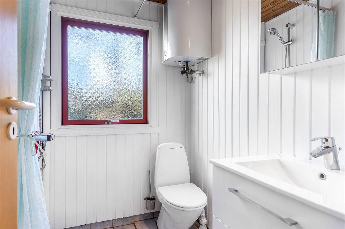 Der er 1 badeværelse med bruseniche og 1 toilet.