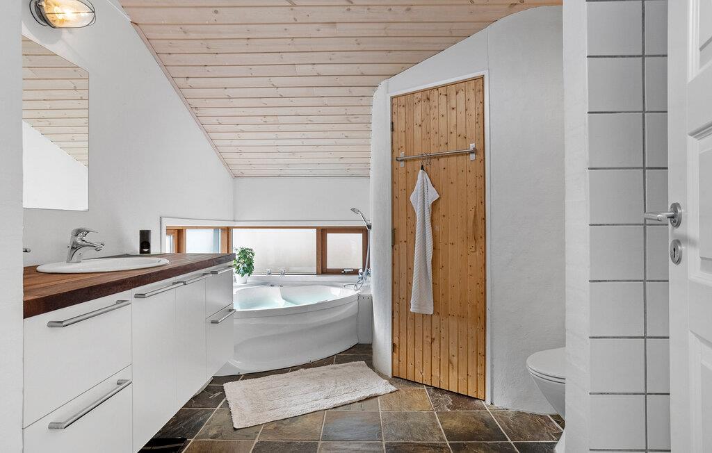 Glæd jer til afslappende dage i dette komfortable feriehus med sauna og spabad nær stranden.