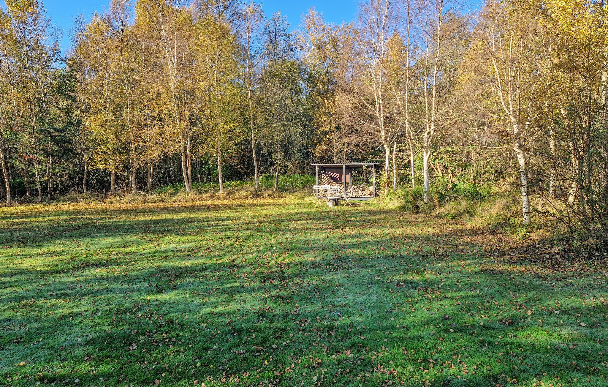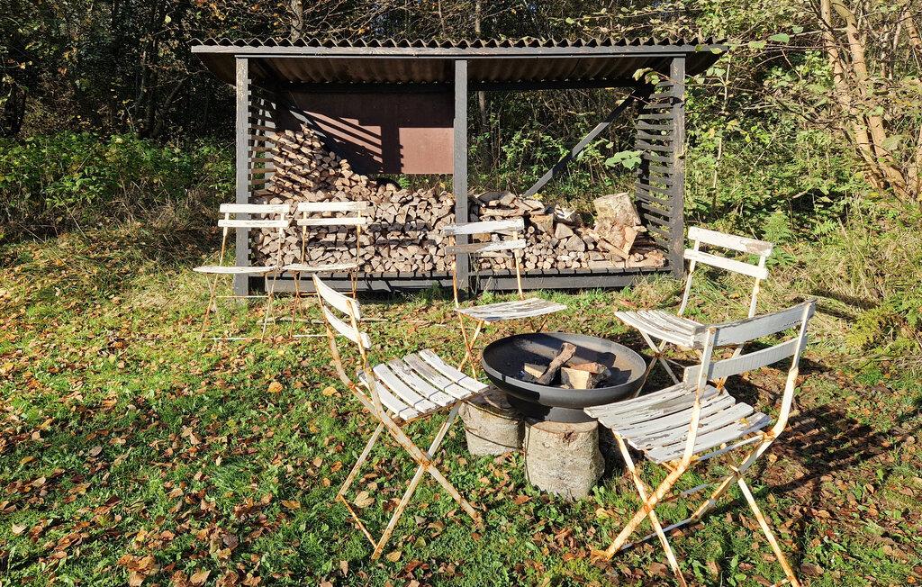 Træd ud på den rummelige terrasse og nyd den friske luft. Læn jer tilbage i loungemøblerne i det overdækkede område eller spis på den store udendørs siddeplads. I haven er der plads til at lege, løbe rundt eller blot slappe af i træernes skygge. Aftenen kan afsluttes med en hyggelig sammenkomst omkring bålstedet – med snobrød, stimulerende samtaler og vindens susen i træerne.