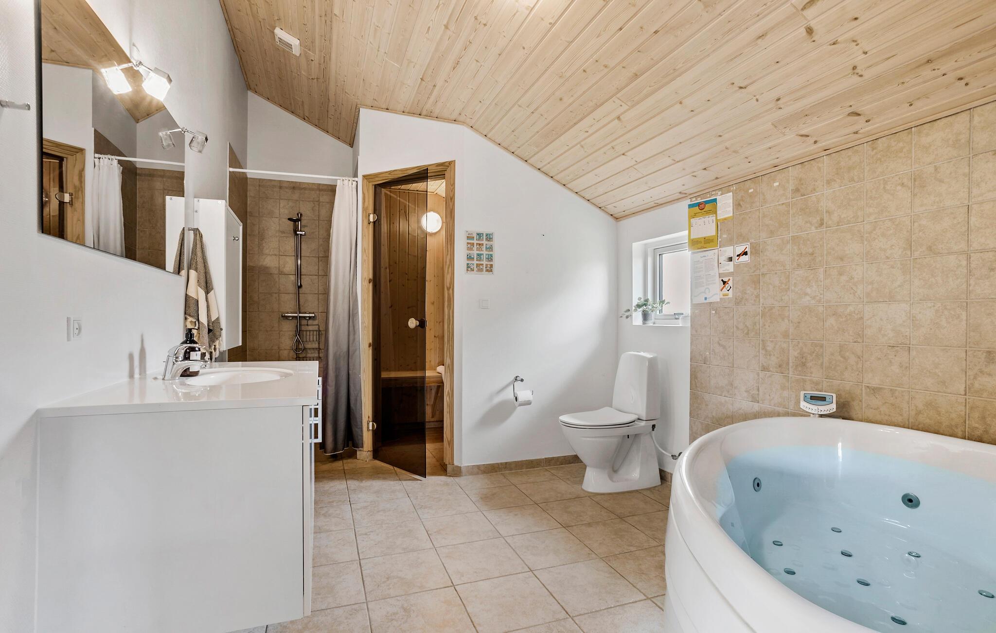 Velkommen til dette rummelige sommerhus i det nordjyske. Huset er indbydende med højt til loftet og store vinduer, som lukker en masse naturligt lys ind. Her kan I starte dagen med en lækker familiemorgenmad, lægge en plan for dagen inden I drager ud på nye ferieoplevelser. I det lyse køkken kan I lave dagen aftensmad og nyde det rundt om det flotte spisebord eller hvis vejret er godt, kan I dække op på bordet på terrassen. På køligere dage kan I fyre op i brændeovnen og spille spil sammen i stuen. Hvis I skal have lidt mere sved på panden, kan I dyste mod hinanden i billiard i aktivitetsrummet.