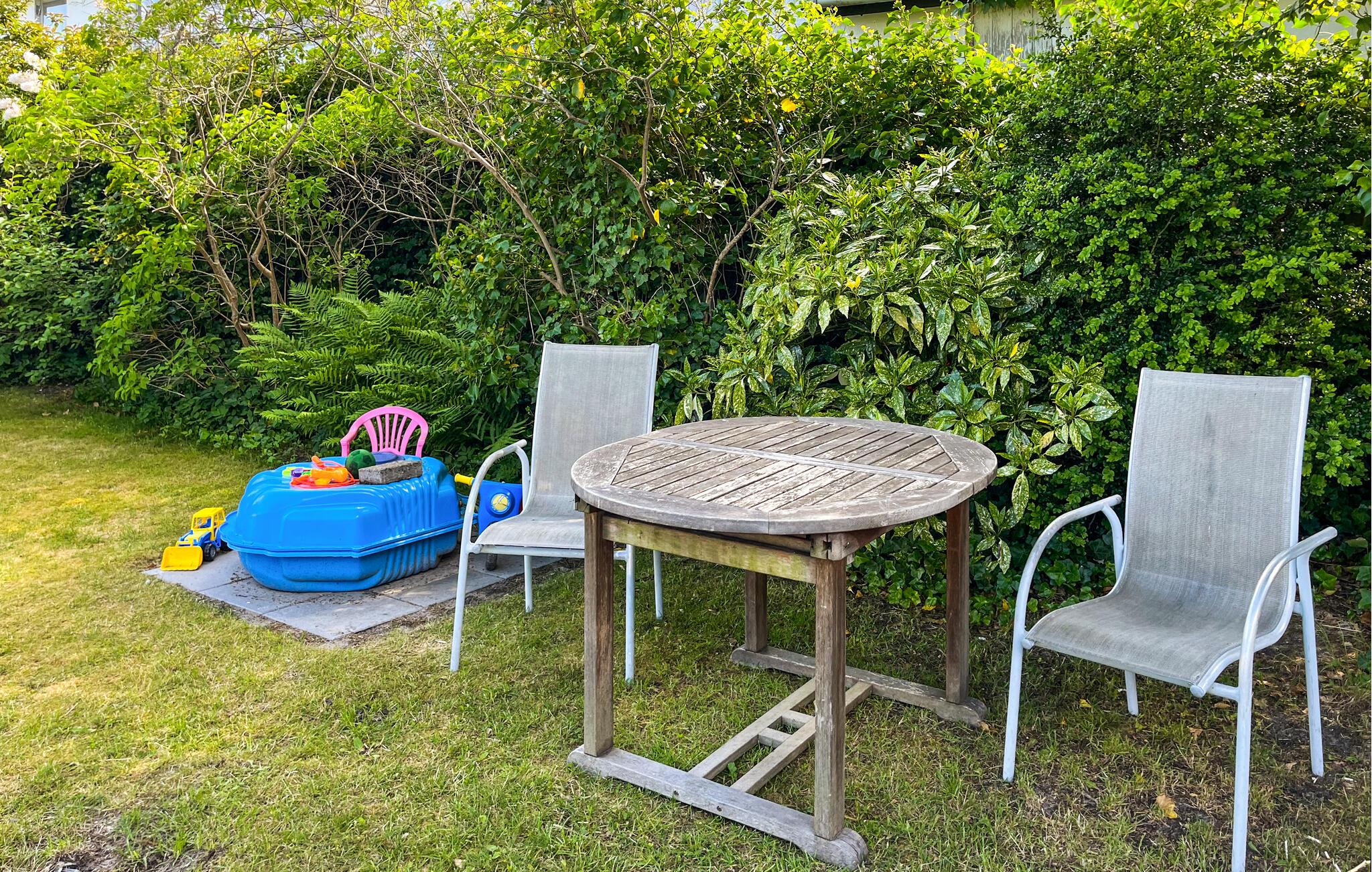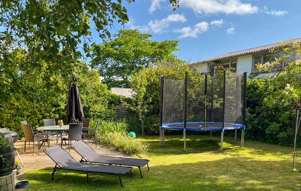 Tilbring tid i den smukt anlagte have med masser af grønt og flere opholdssteder. Spis morgenmad i den overdækkede udestue eller nyd solen på liggestolene. Grill på terrassen og slap af under parasollen. Børnene vil nyde den store trampolin og gynge, og der er masser af plads til at lege.