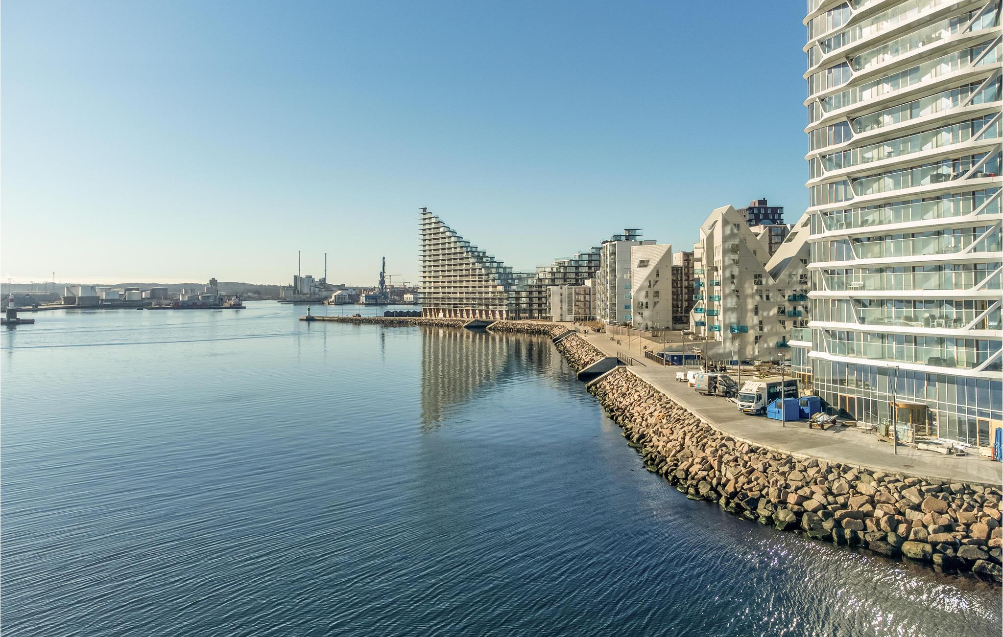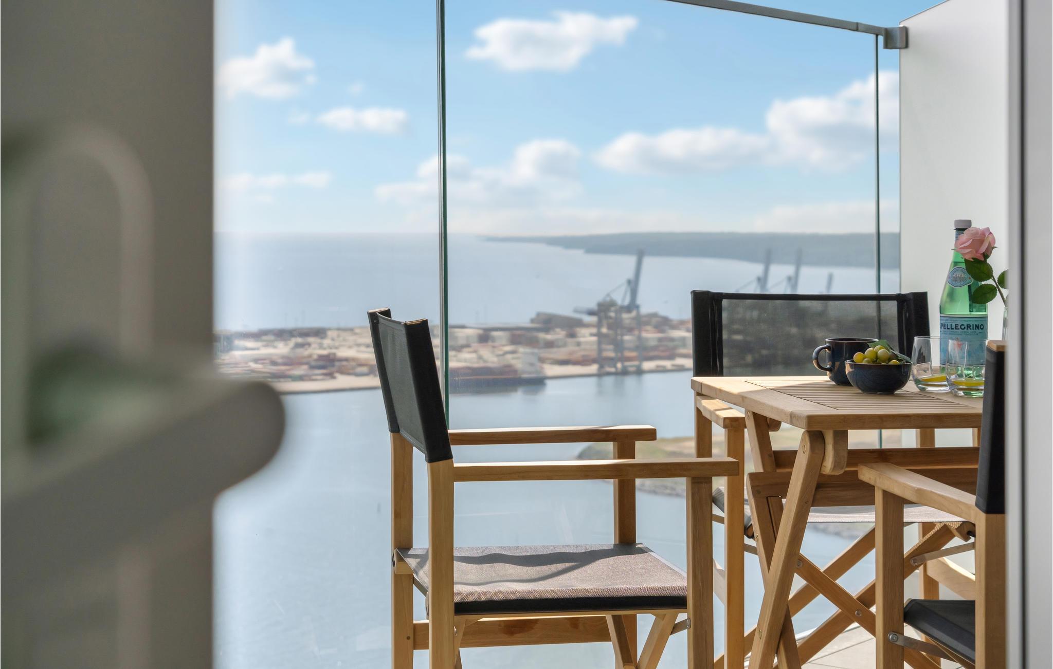 Eksklusiv ferielejlighed i Danmarks højeste bygning med panoramaudsigt og moderne faciliteter ved Aarhus Ø havn.