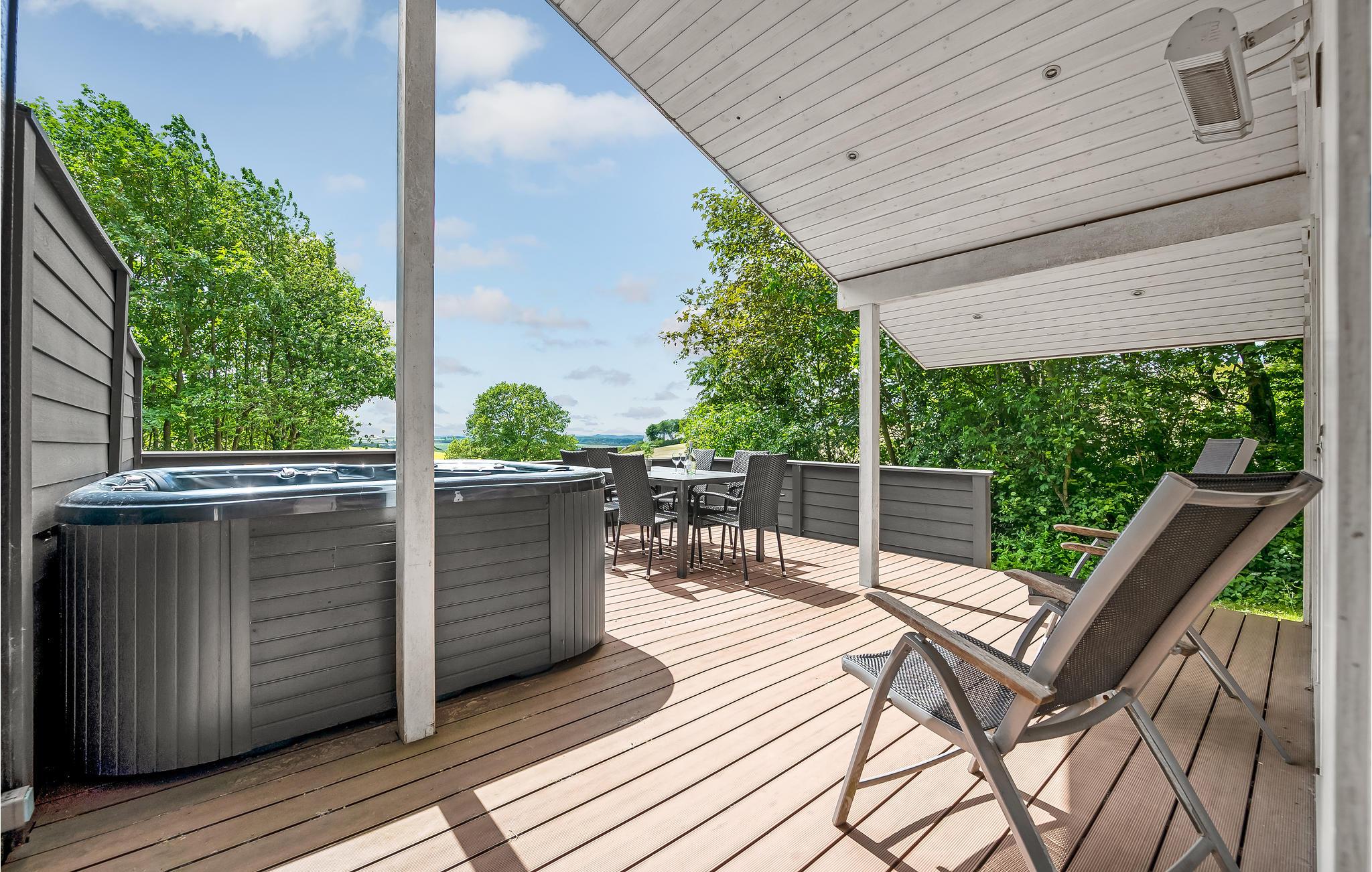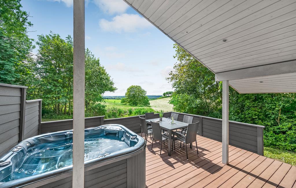 Læn jer tilbage i liggestolene på terrassen og slap af i det udendørs spabad. Fra grunden går der en offentlig sti, som fører til Jelshøj (ca. 15 min). Herfra er der en fremragende udsigt til den jyske hovedstad og Aarhusbugten - ja helt til Helgenæs på klare dage.