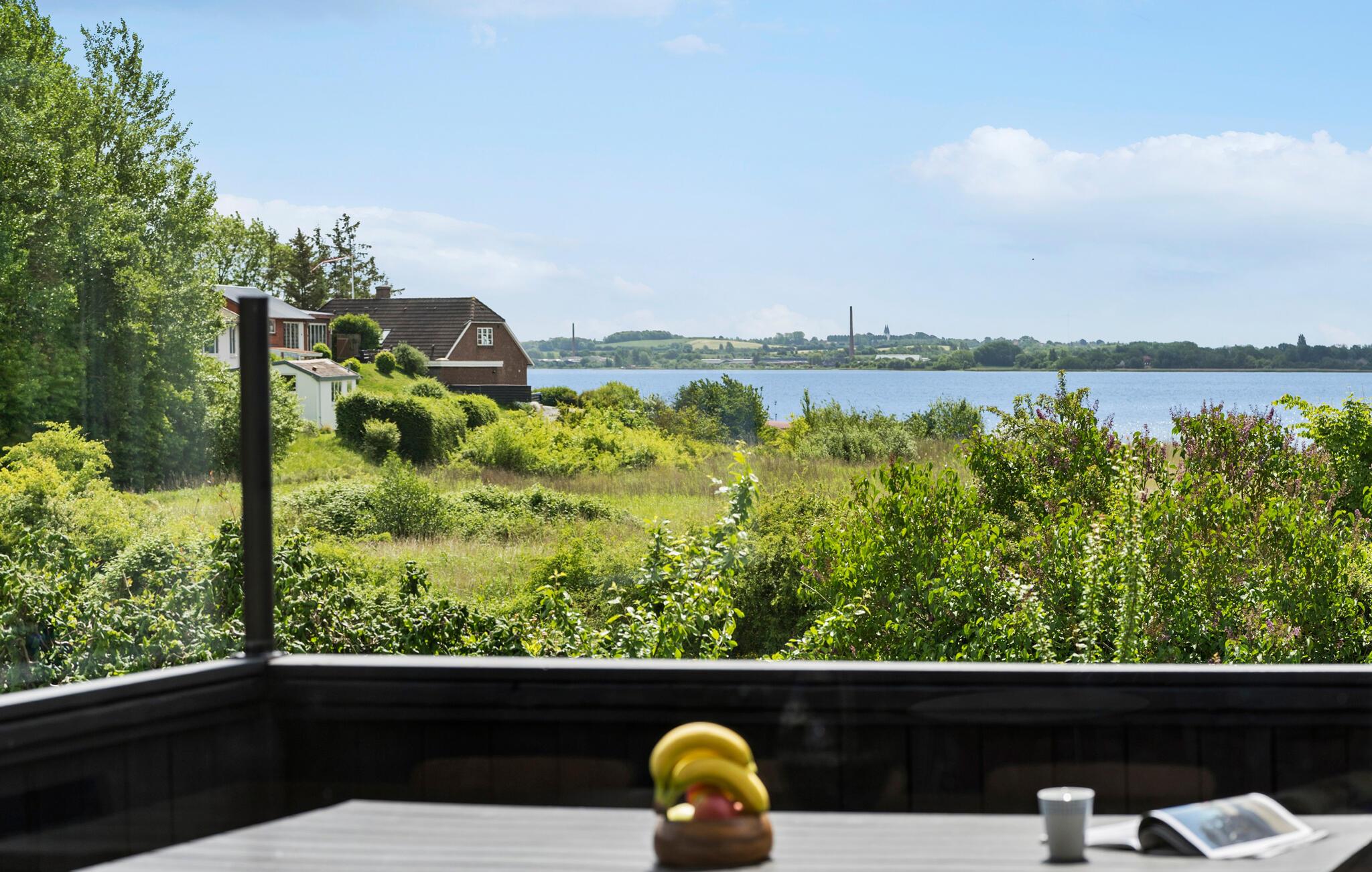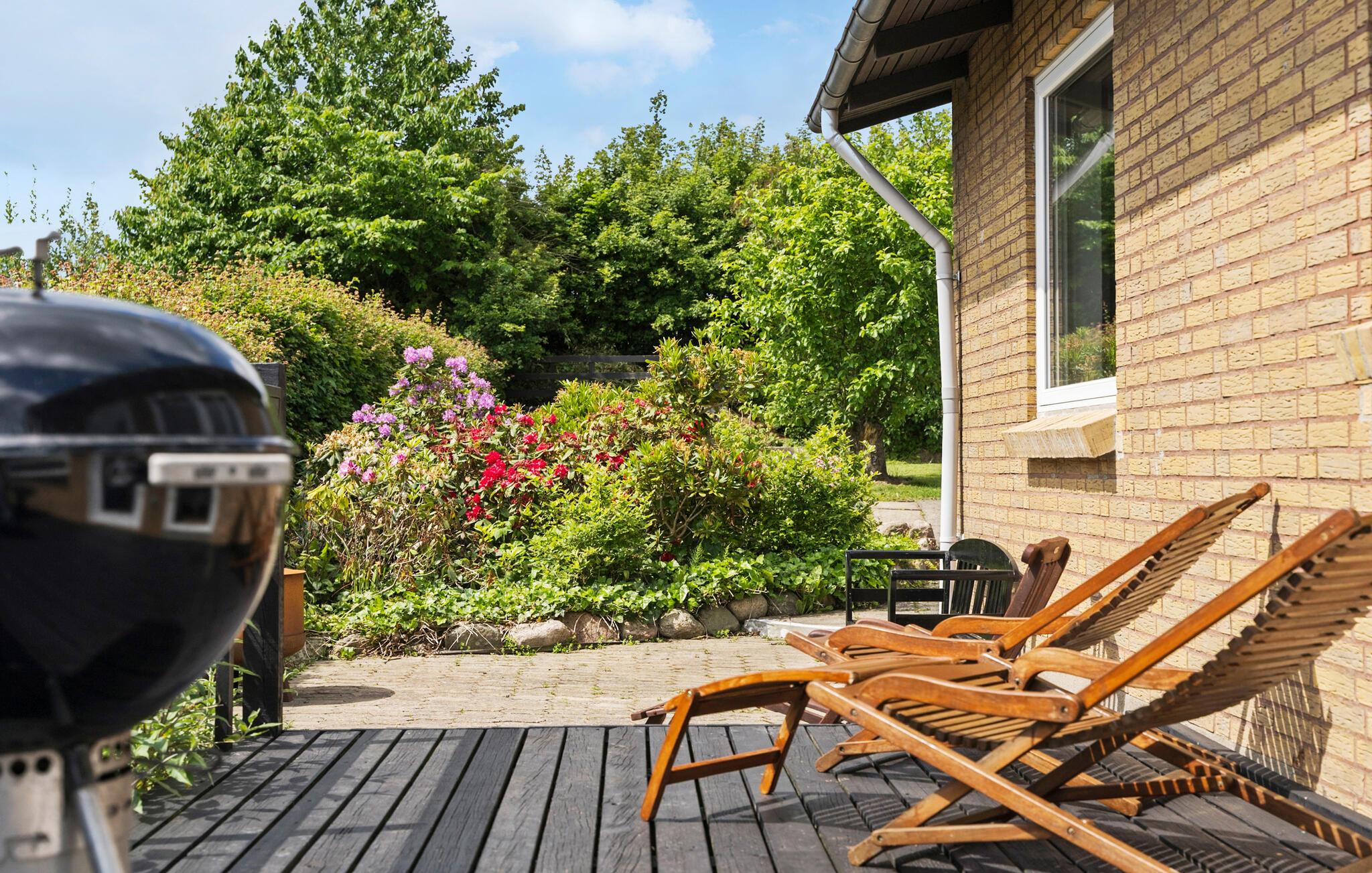 Hyggeligt feriehus med havudsigt, stor terrasse og kajakker ved Adsbøl Strand.