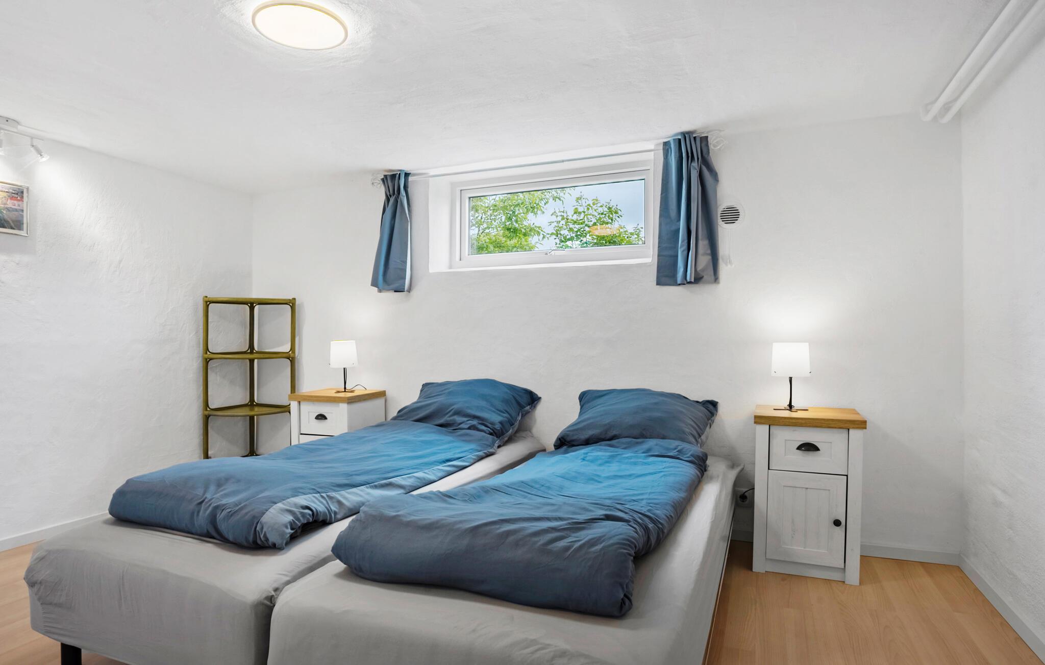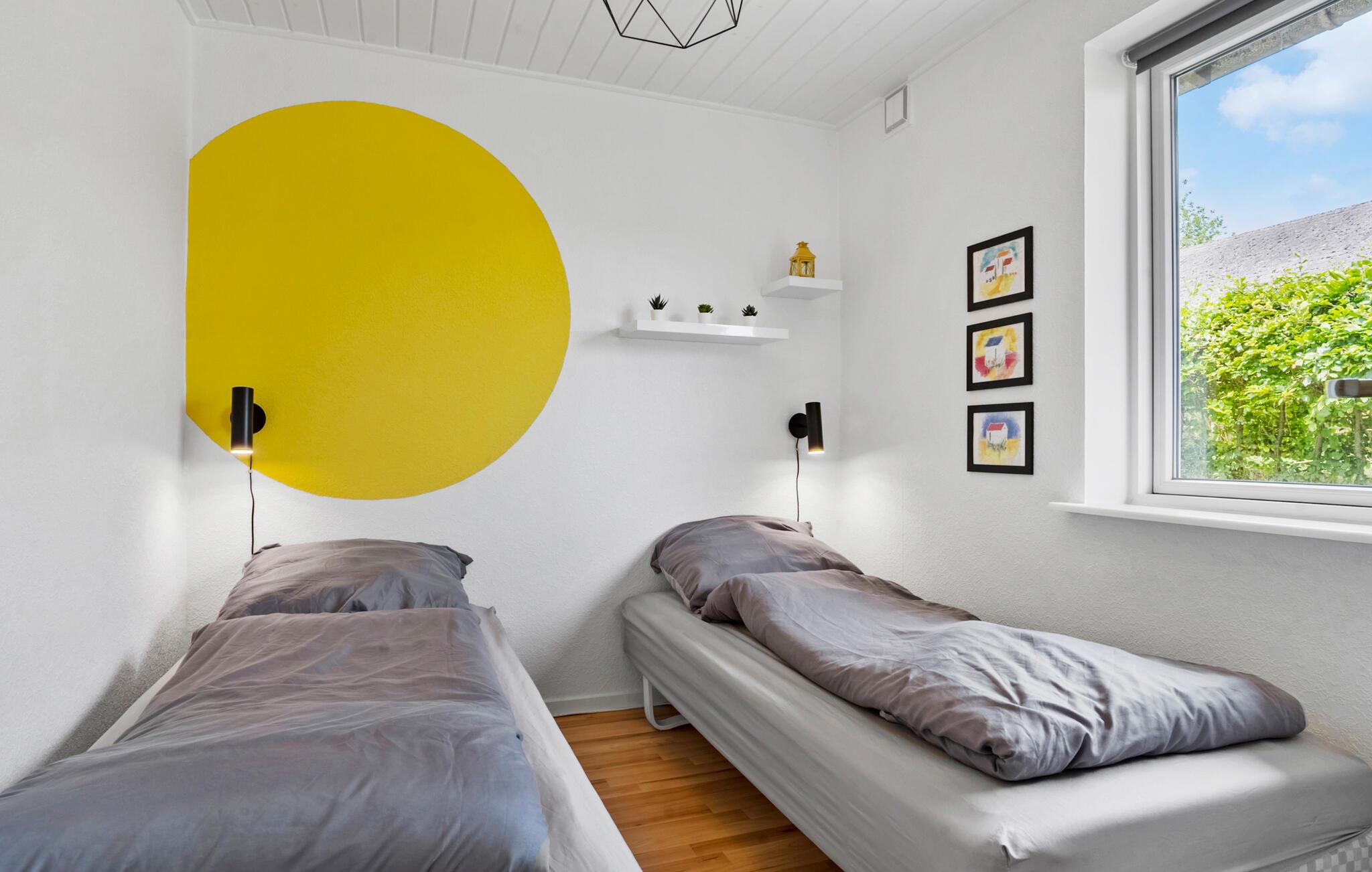 Omgivet af smuk natur og med en vidunderlig udsigt over vandet, er dette charmerende feriehus på Adsbøl Strand det ideelle sted at komme væk fra det hele. Lad jer fortrylle af de rolige omgivelser og nyd afslappende dage ved havet. Den åbne stue med store vinduespartier giver masser af lys og en imødekommende atmosfære. Find jer godt til rette i sofaen, hvor brændeovnen giver hyggelig varme på køligere dage. I kan lave mad sammen i det veludstyrede køkken med køkkenbord og nyde jeres måltider ved det store spisebord i træ. Det åbne design skaber en harmonisk sammenhæng mellem madlavning, spisning og afslapning.