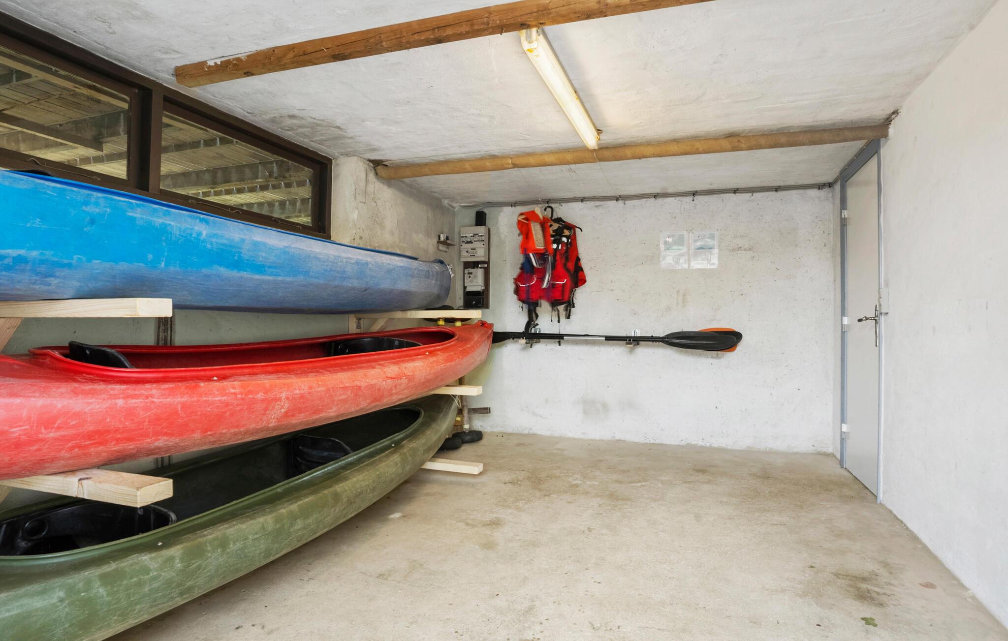 Feriehus med havudsigt og kajakker ved stranden