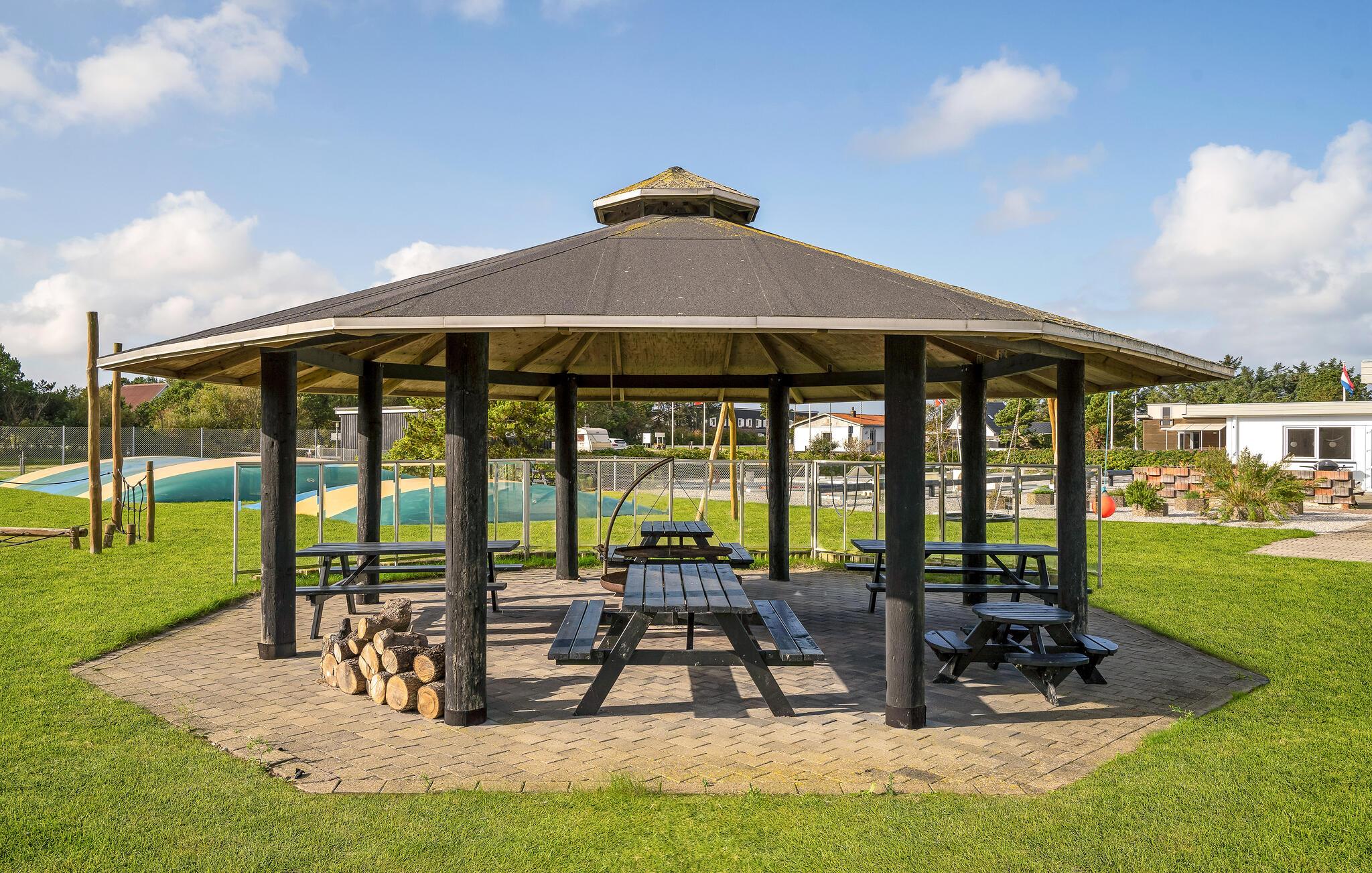 Hyggeligt sommerhus på Krik Vig campingplads med terrasse, tæt på strand og aktiviteter for hele familien.