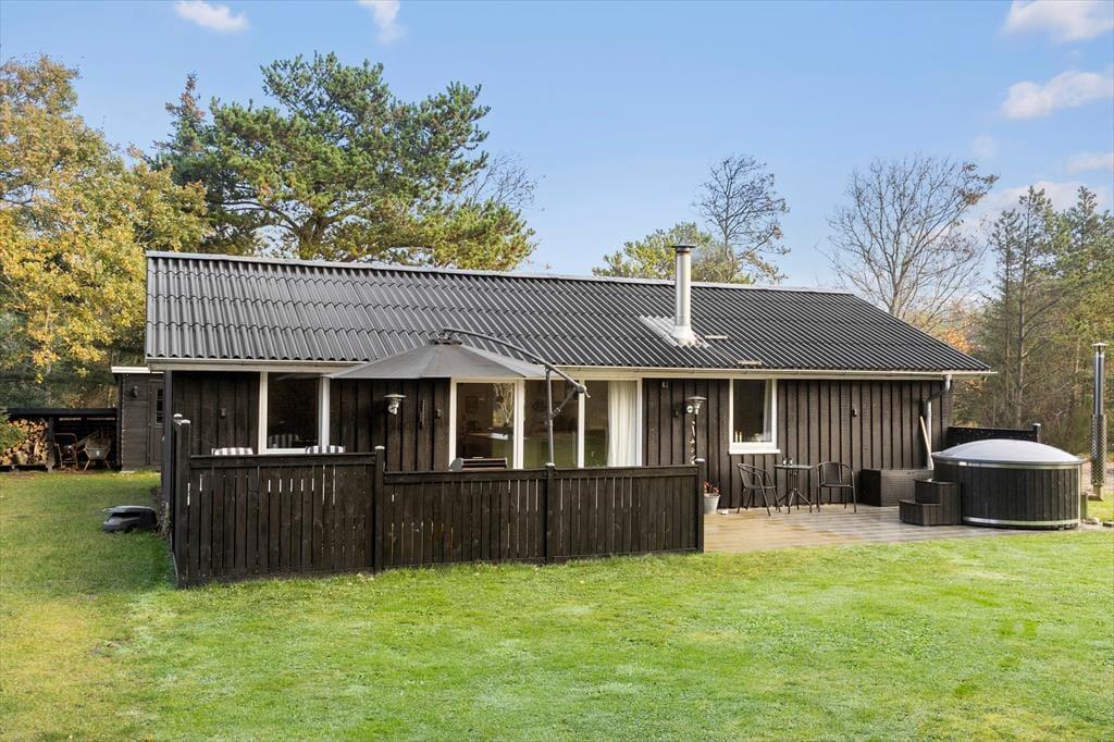 Udenfor åbner en stor grund sig, som inviterer til leg og afslapning i det fri. På den hyggelige træterrasse finder du et dejligt vildmarksbad, hvor du kan synke ned og lade varmen omslutte dig – et perfekt sted at nyde de lange sommeraftener eller kølige vinterdage. Omkring terrassen kan du slappe af i havemøblerne, grille på de lune aftener og lade de naturskønne omgivelser være baggrund for din ferie. Med den rummelige grund er der rig mulighed for både børn og voksne til at lege og hygge sig udenfor.