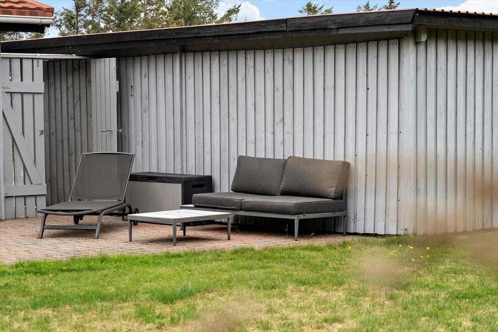Den store, ugenerede grund omkring sommerhuset indbyder til afslapning og leg i det fri. Her er et dejligt græsareal, der egner sig perfekt til fodbold, kroket eller bare en rolig stund i hængekøjen under åben himmel. Mod øst og syd finder du rummelige terrassearealer, hvor du kan nyde solen dagen lang – og finde læ, uanset hvor vinden kommer fra. Start dagen med morgenkaffe i solen, læs en bog i skyggen midt på dagen, og saml familien til grillmiddag på terrassen, når aftensolen forgylder haven. Her er det let at finde sin egen plet, hvor ferien føles helt rigtig.