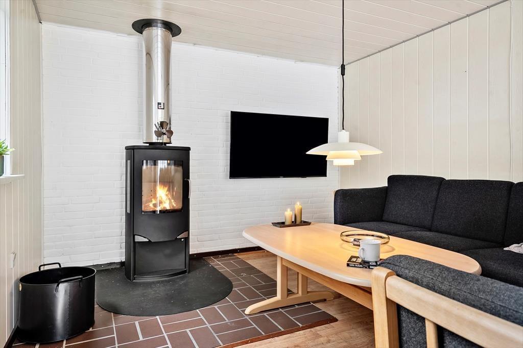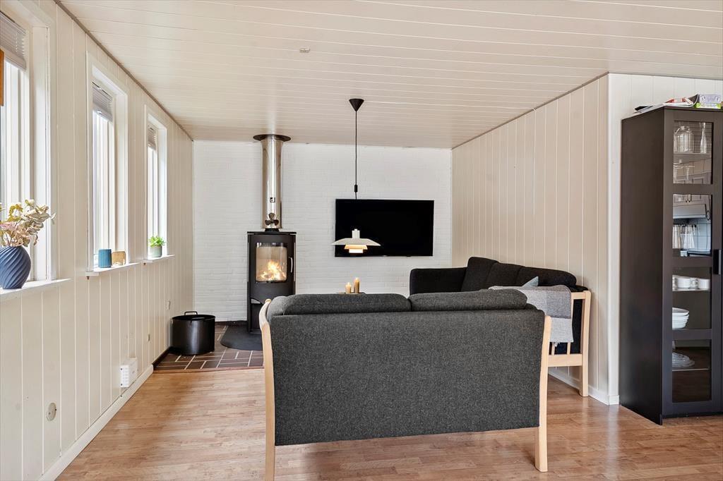 Det første, du mærker, når du træder ind i sommerhuset på Isfuglevej 19, er følelsen af varme og hjemlig hygge. Den lyse opholdsstue er indrettet med komfortable møbler og har et skønt lysindfald fra de store vinduer. Midt i stuen står brændeovnen klar til at sprede varme og knitrende stemning, mens du nyder en god bog, et brætspil med familien eller bare en stille stund med udsigt til haven. Her er plads til at trække vejret og lade feriefreden sænke sig. Når du trænger til ekstra forkælelse, venter sommerhusets sauna – et oplagt sted at finde ro efter en lang gåtur ved havet eller en frisk dukkert i bølgerne.
