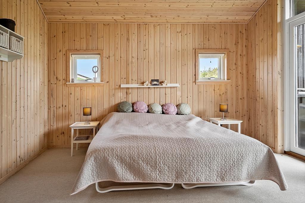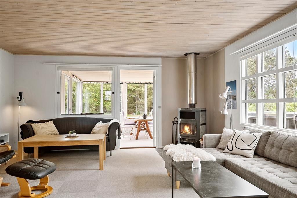 Når du træder indenfor i dette hyggelige sommerhus, mærker du straks den varme atmosfære, der inviterer til afslapning og samvær. Brændeovnens knitren skaber rammerne for hyggelige aftener, mens den moderne varmepumpe sikrer et behageligt indeklima året rundt. Indretningen er enkel, men charmerende, og her er plads til, at op til syv personer kan føle sig hjemme. Uanset om du vil lave mad i det veludstyrede køkken eller finde dig til rette med en god bog i sofaen, skaber huset de perfekte rammer for afslappende feriedage.