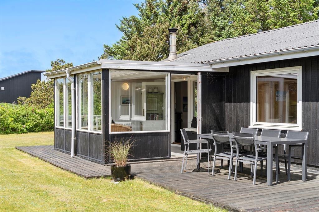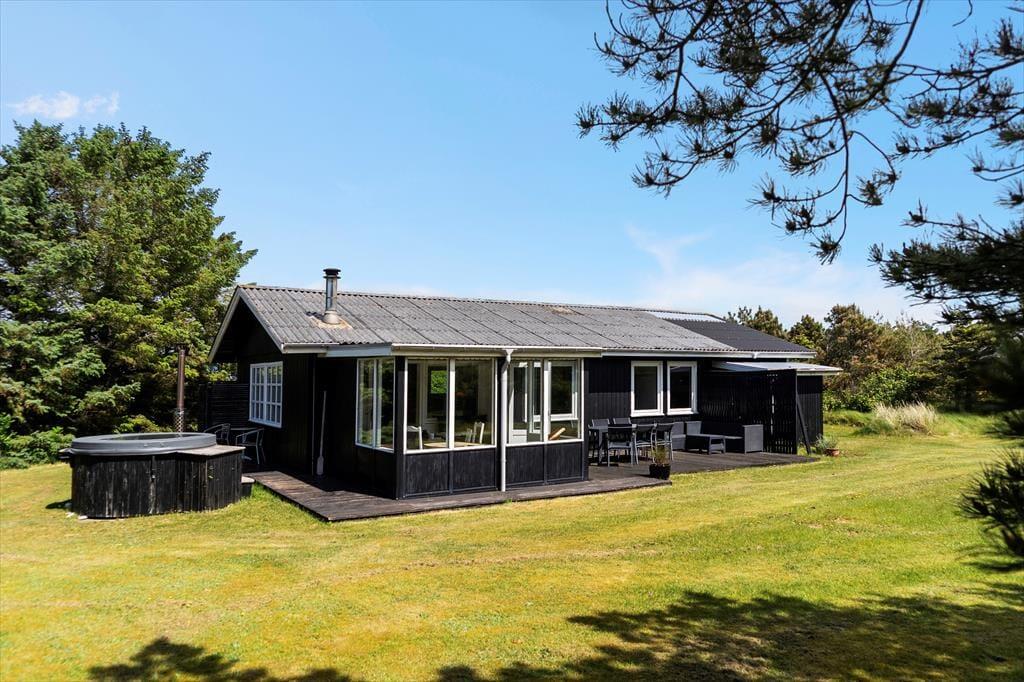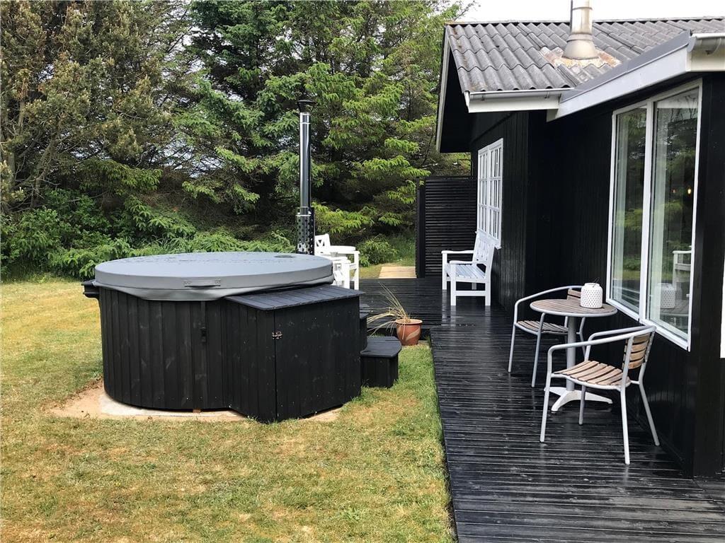 Husets udendørsområder er som skabt til at nyde det danske ferieliv. Den store terrasse indbyder til grillmiddage og solrige eftermiddage, mens vildmarksbadet tilbyder ren luksus og afslapning under åben himmel – måske endda med stjernerne som bagtæppe. For de aktive og friluftsglade er der også en udendørsbruser, perfekt efter en dag på stranden. Grunden omkring huset giver masser af plads til både leg og ro, og du kan altid finde et hjørne at nyde kaffen i, mens du lytter til havets brusen i baggrunden.