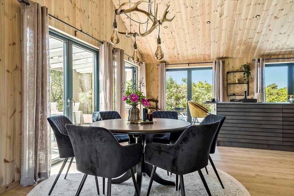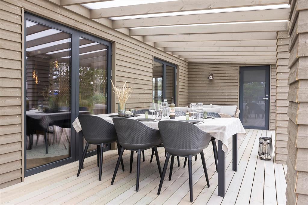 Udenfor finder du det ultimative fristed til afslapning og nærvær. Den rummelige terrasse er perfekt til lange grillmiddage og hyggestunder under åben himmel. Når stjernerne titter frem, kan du synke ned i det luksuriøse vildmarksbad og mærke den varme damp, mens du nyder roen i natten. Forfrisk dig under den udendørs bruser efter en tur til stranden, som ligger blot en kort gåtur væk. Her kan du starte dagen med morgenkaffe på terrassen eller nyde lyden af naturen, der omgiver huset – en oplevelse, der både giver fornyet energi og indre ro.