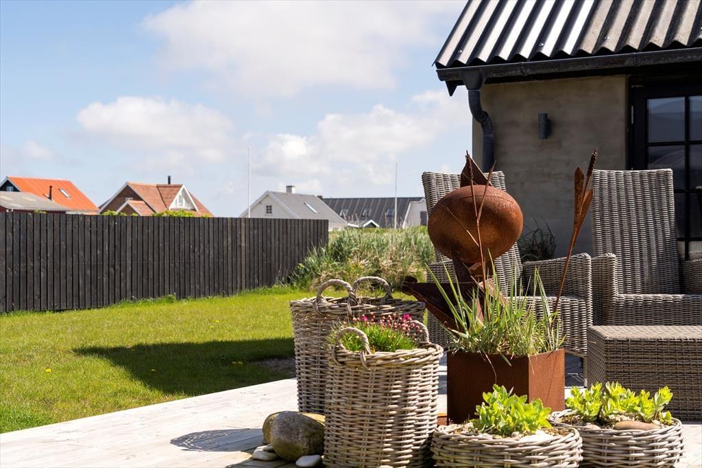 Udenfor venter en stor terrasse og et skønt udeområde, hvor du kan nyde livet i den friske vestkystluft. Her er plads til solbadning, hyggelige grillmiddage og leg på plænen for de yngste i familien. Terrassen er designet, så du altid kan finde en solstråle eller søge skygge, når det bliver nødvendigt. Den store grund giver masser af muligheder for udendørs aktiviteter, og med Vesterhavet lige i nærheden kan I nemt kombinere ferien med strandture og havets beroligende rytme.