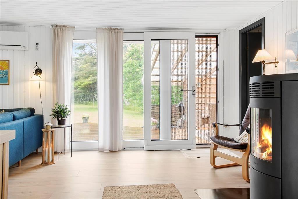 Sommerhuset er indrettet med fokus på hygge og samvær. Det lyse opholdsrum samler stue, spiseplads og køkken i ét, så I kan nyde hinandens selskab – uanset om der laves mad, spilles brætspil ved bordet eller slappes af i sofaen. Brændeovnen bliver hurtigt familiens favorit, når ilden knitrer og skaber en varm og rolig atmosfære, særligt efter en dag med udendørs oplevelser. De bløde møbler og den enkle, men hyggelige indretning, gør det nemt at falde til og slappe af, og med plads til op til 6 personer er her rig mulighed for, at både store og små kan nyde ferien sammen.