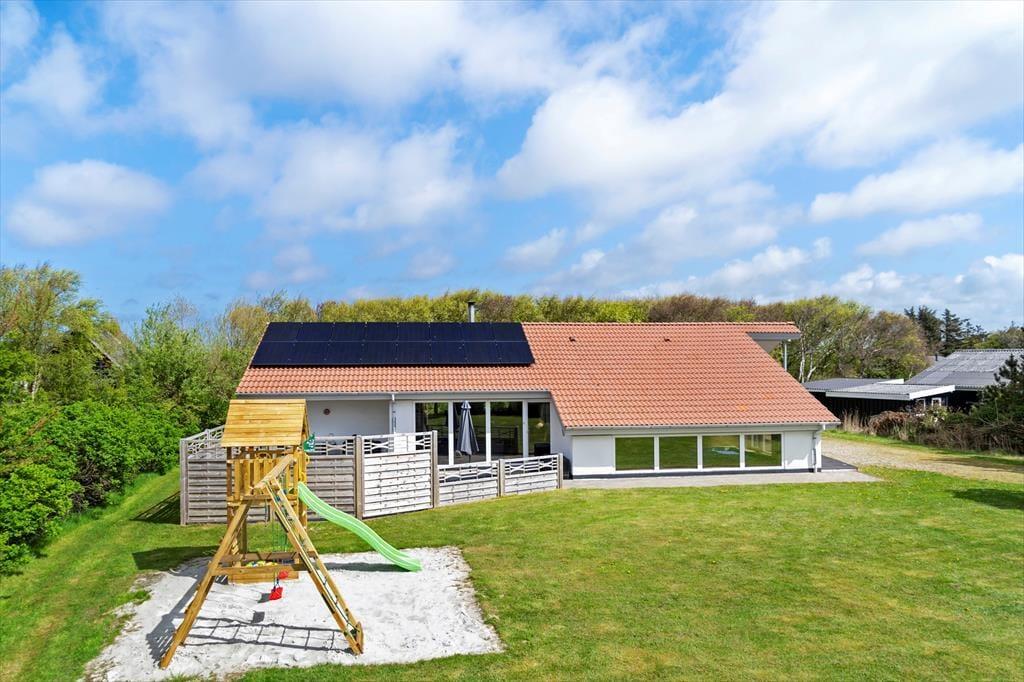 Udenfor åbner sig en skøn oase med terrasseområder, hvor du kan nyde solen eller søge skygge efter behov. Den store grund indbyder til leg og udendørs aktiviteter, mens vildmarksbadet er det perfekte sted at afslutte en dejlig dag. Her kan du læne dig tilbage og nyde den klare stjernehimmel eller den friske luft fra Vesterhavet. Sommerhusets rolige beliggenhed giver mulighed for at finde fred og ro, mens lydene fra naturen skaber den perfekte baggrundsmusik til ferien.