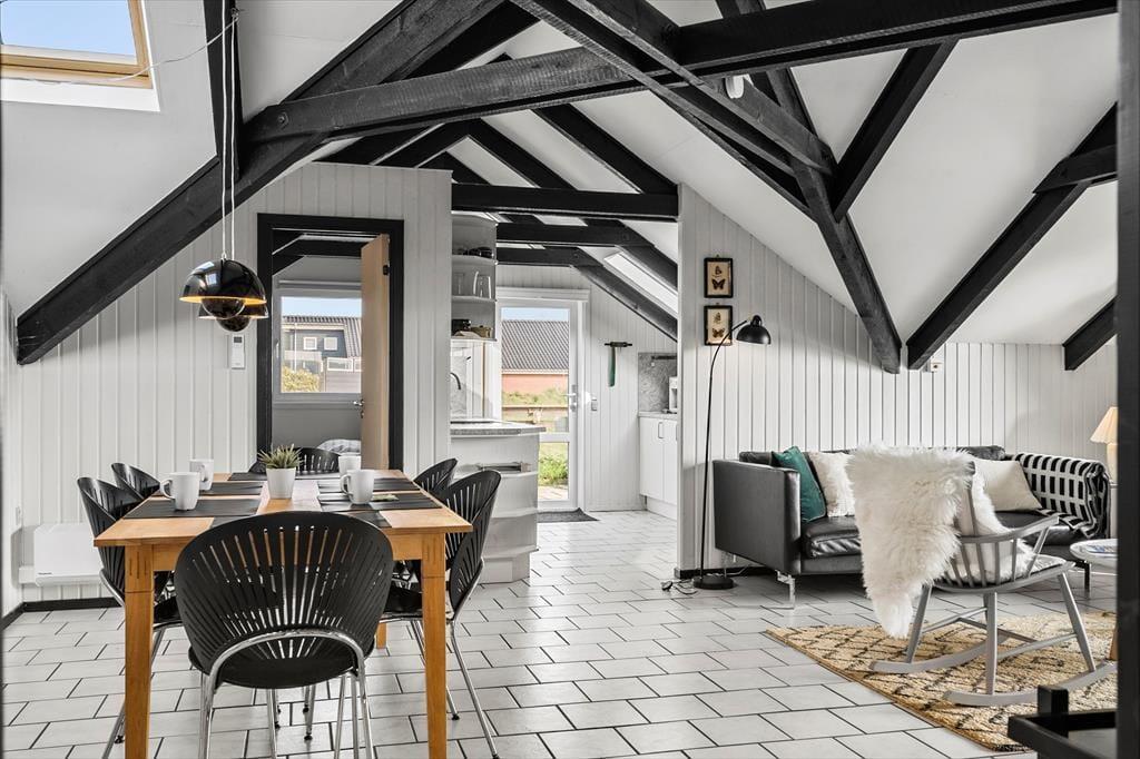 Når du træder indenfor i sommerhuset, mødes du af en varm og hyggelig atmosfære, der straks får dig til at føle dig hjemme. Den velindrettede stue med komfortable møbler indbyder til afslapning, uanset om du nyder en god bog, spiller brætspil med familien eller bare lader brændeovnens flammer kaste et hyggeligt skær over aftenen. Køkkenet ligger i åben forbindelse med stuen, så du kan tilberede lækre feriemåltider uden at gå glip af det gode selskab. Huset har plads til op til seks personer, så der er rig mulighed for at samle familien eller tage på ferie med vennerne.