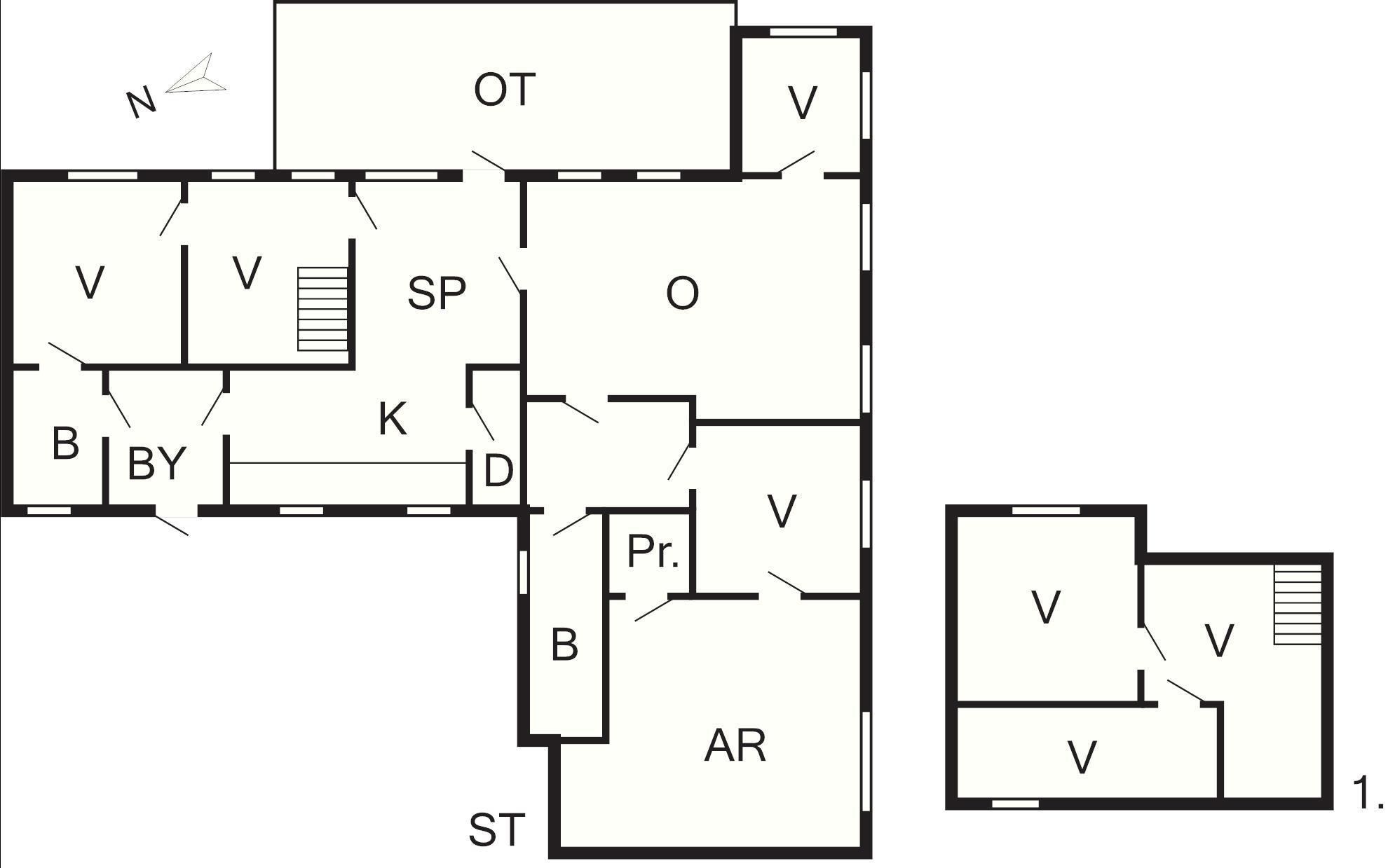 7 Soveværelser: (2S)+(1DS)+(2S)+(2S)+(2S)+(3S)+(1S+1DO)