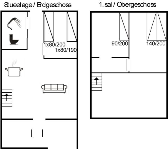 Bemærk at den ene soveplads er på en madras i værelset med 1 enkeltseng.