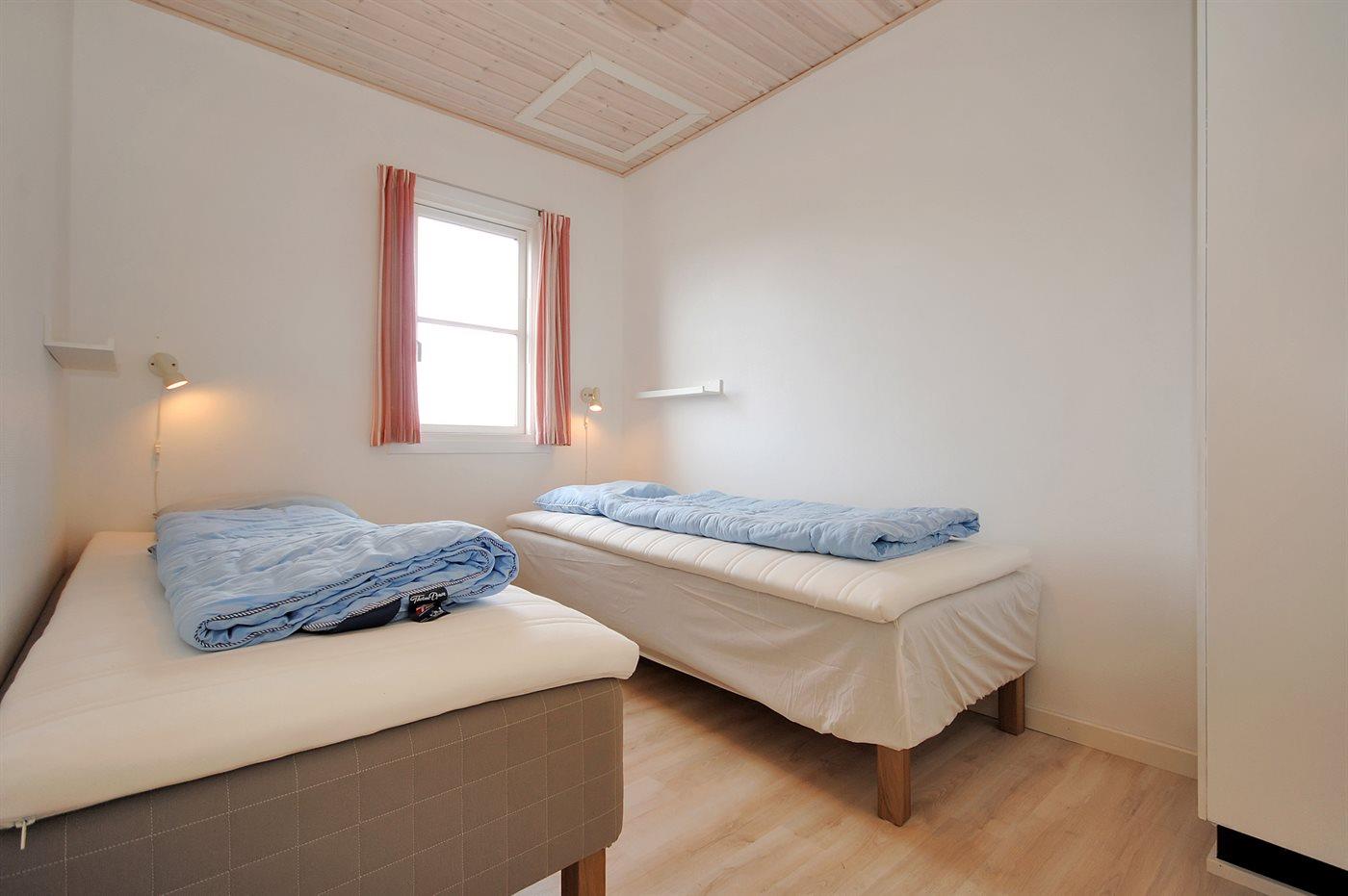 Der er i alt 3 soveværelser. Sovepladserne fordeler sig på: 2 sovepladser i dobbeltseng. 2 sovepladser i enkeltsenge. 1 soveplads i sovesofa (enkelt).