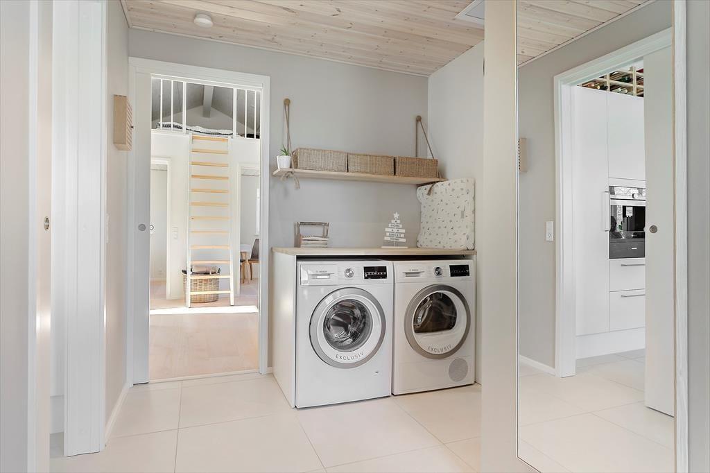 Sommerhus i Ajstrup Strand, Østjylland, med plads til 6 voksne og 2 børn. Der er en hyggelig indretning med bl.a. brændeovn, og du finder desuden vaskemaskine, opvaskemaskine og tørretumbler i boligen.