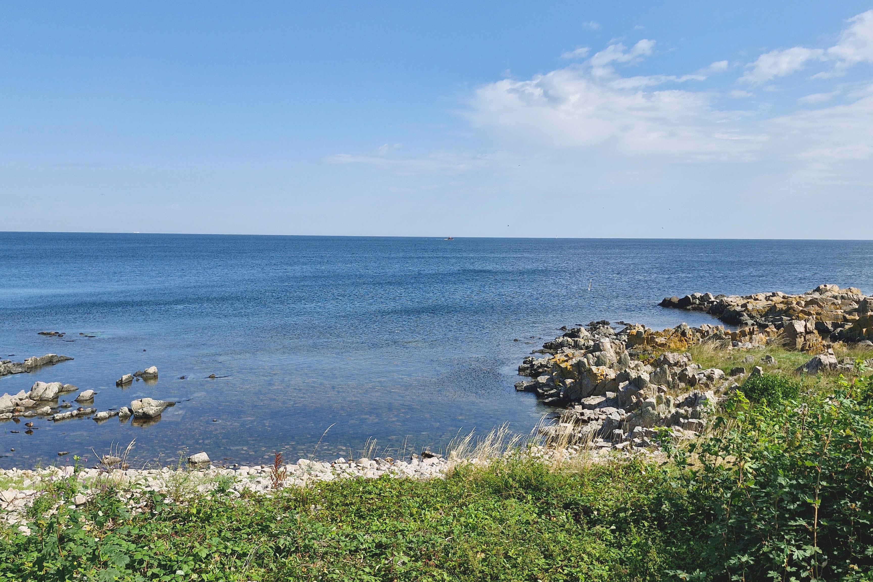 Nyd roen i charmerende Sandvig – lys og hyggelig feriebolig med havudsigt, tæt på strand, klipper og hyggelige caféer.