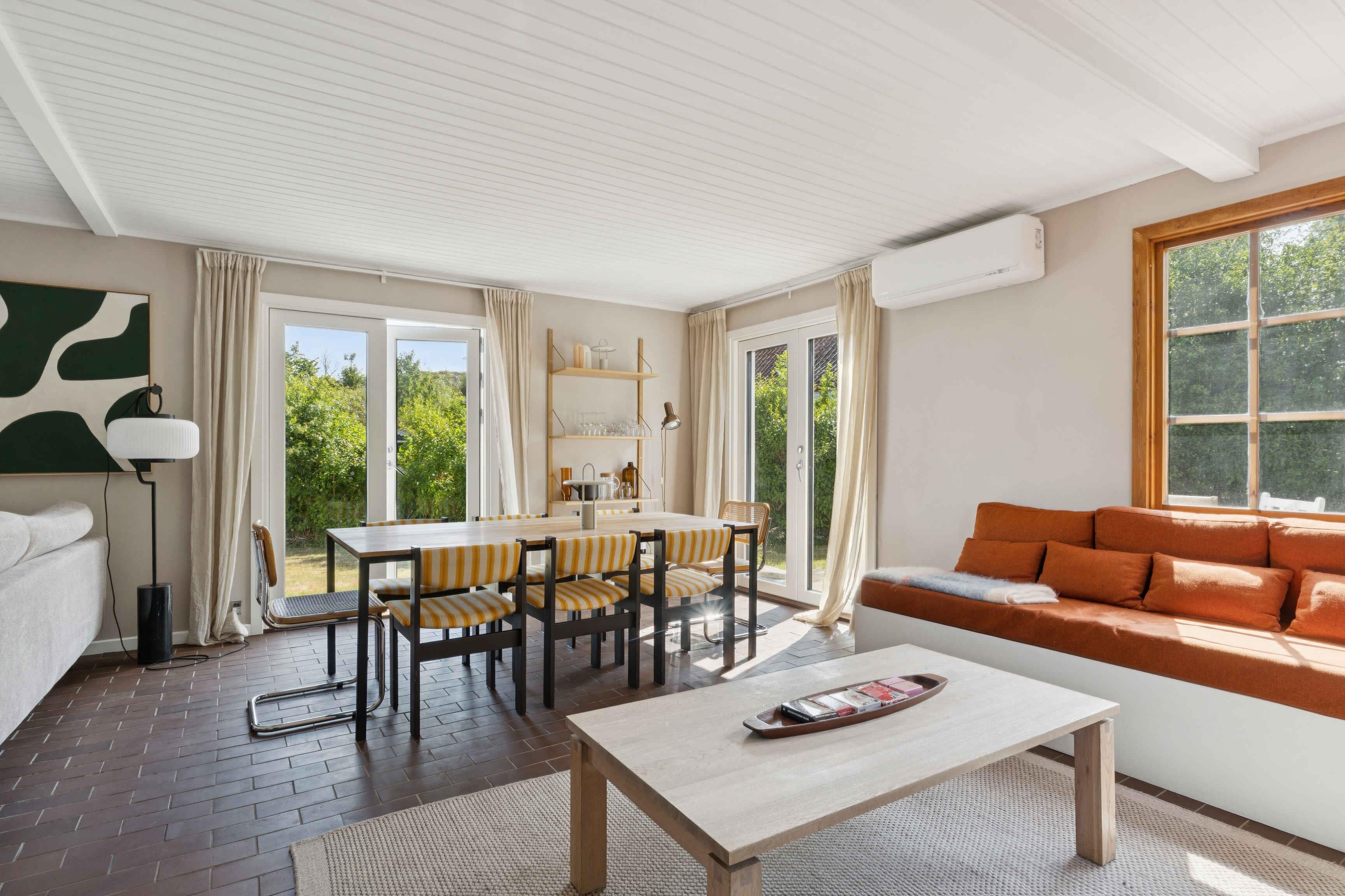 Velkommen til dette sommerhus i hjertet af Sandvig. Huset er på 116 m² kombinerer god plads med en rolig beliggenhed tæt på både natur og by. Indretningen er gennemtænkt, så der er rum til både fællesskab og privatliv. Huset har to soveværelser og fem sovepladser, hvilket gør det velegnet til familier eller mindre grupper. Opholdsrummene er åbne og lyse med udsigt til havet. Store vinduer trækker omgivelserne ind, og der er god plads til fælles måltider og afslapning. Flere hyggelige kroge indbyder til læsning, spil eller en stille stund alene. Kun 50 meter fra huset ligger kysten. Her kan man bade, gå ture langs klipperne eller bare nyde udsigten. Havet er hele tiden nærværende – både visuelt og i lydene, man vågner op til. En varmepumpe sikrer et behageligt indeklima året rundt. Der er internet i huset, så det er muligt at arbejde, streame film eller holde kontakt med omverdenen, hvis det ønskes. Sommerhuset ligger i et område, hvor det er let at finde både ro og oplevelser. Man bor tæt på små butikker, caféer og kulturtilbud, samtidig med at naturen starter lige uden for døren. Området byder på dramatiske klippekyster, fine badestrande og stemningsfulde bymiljøer. Her er kunsthåndværk, røgerier og havnemiljøer, hvor tiden står stille. Gode stier gør det let at vandre, cykle og opleve øens særprægede landskaber. Det er nemt at fylde dagene med indhold – eller vælge det fra. Her er plads til både tempo og pauser. Udsigten følger én, uanset hvor man befinder sig i huset eller på grunden. Uanset om du ønsker at starte dagen med kaffe i morgensolen, tage en dukkert i havet eller nyde en stille aften med udsigt over vandet, er dette stedet. En ideel base for både natur- og livsnydere. Et ferieophold her er en balance mellem at være tæt på det hele og alligevel trække sig lidt væk. Det giver en særlig ro, som mange søger, men sjældent finder. Lejligheden er ikke egnet til mindre børn Obs, udlejes ikke til erhversmæssigt brug.